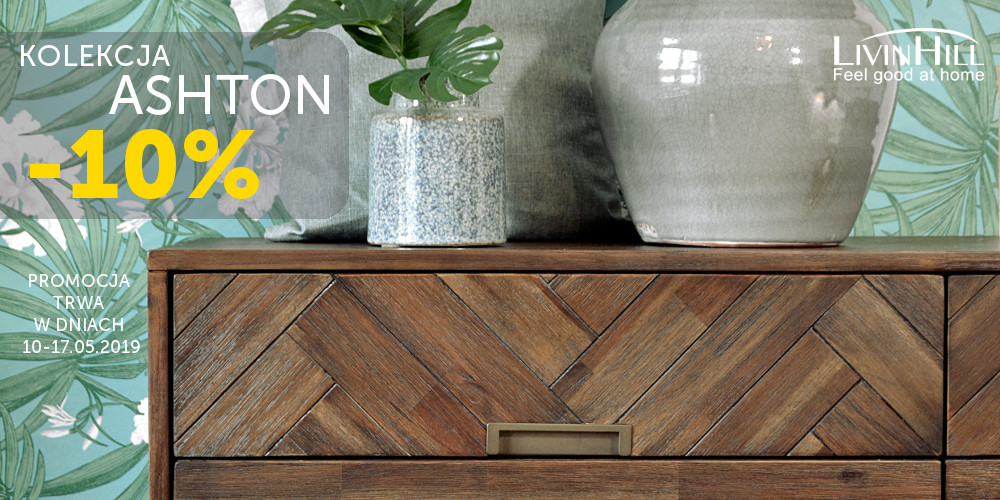 Kolekcja Ashton to drewniane meble w stylu retro o pięknym brązowym zabarwieniu z uchwytami w kolorze mosiądzu. Prosta forma w połączeniu z delikatną intarsją nadaje kolekcji charakter. Zaokrąglone krawędzie blatu i ścian bocznych, lakierowanie i szczotkowana powierzchnia całego mebla podkreślają formę i kształt. Zastosowane w drzwiach prowadnice umożliwiają łatwe i ciche przesuwanie. Meble wykonane są w najwyższej jakości materiałów, są stabilne i jednocześnie swoją charakterystyczną formą sprawiają, iż będą się sprawdzać w każdym pomieszczeniu. Stylowe i eleganckie meble z kolekcji Ashton, dzięki szerokiej gamie produktów sprawią, iż każda sypialnia, jadania, salon czy przedpokój, będą wyglądały niepowtarzalnie.