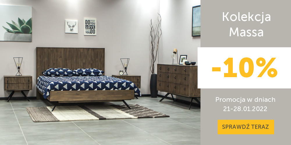 Kolekcja Massa to niebanalne drewniane meble na metalowych nóżkach. Korpusy w kolorze brązowym pięknie komponują się z czernią nóżek. Prosta forma korpusów przełamana jest przede wszystkim strzelistymi nóżkami, oryginalnymi uchwytami oraz strukturalnym frontem nadającym całości klimatu vintage. Meble z kolekcji Massa to idealna propozycja dla osób szukających zarówno mebli najwyższej jakości jak i ponadczasowego designu.