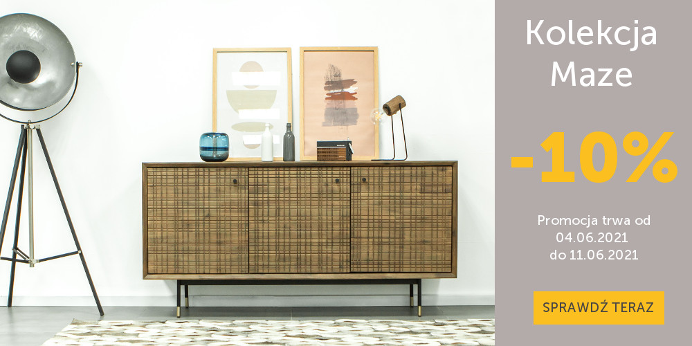 Kolekcja Maze to nowoczesne meble, charakteryzujące się starannym wykonaniem zarówno prostych formą korpusów, jak i rzeźbionych frontów czy metalowych nóżek zakończonych złotym dekorem. Ponadczasowe połączenie korpusów z naturalnego drewna i czarnych nóżek sprawdzi się w aranżacji każdego wnętrza. Szeroka gama produktów pozwala na wyposażenie sypialni, jadalni, salonu czy przedpokoju nadając pomieszczeniu nowoczesny klimat z nutą stylu retro.