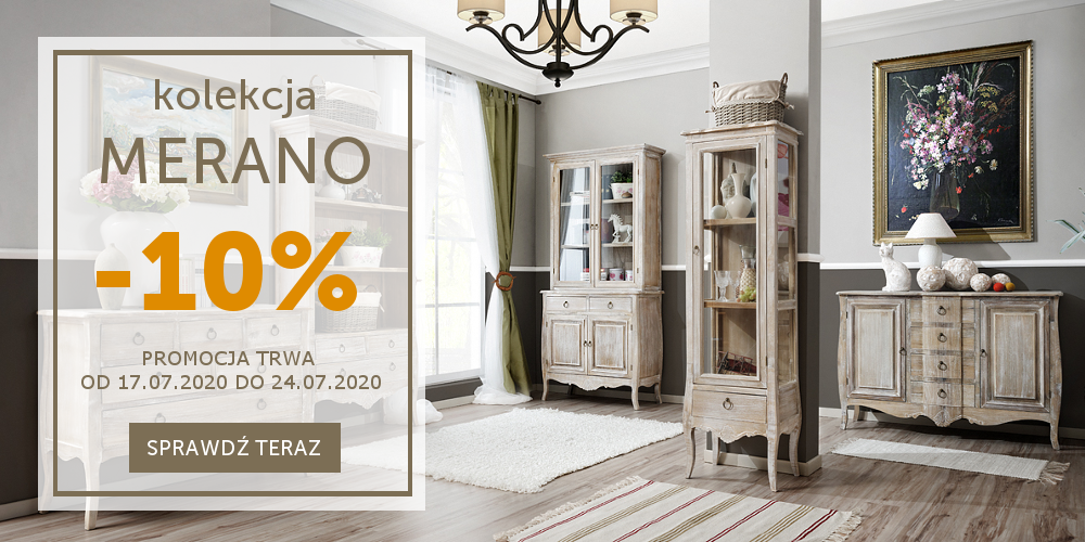 Oferujemy Państwu piękne meble z linii MERANO o niepowtarzalnym wzornictwie i kolorystyce. Meble zmontowane przez producenta. Wykończenie w stylu rustykalnym, ręcznie malowane. Kolekcja składa się z szerokiej gamy produktów - komody, regały, witryny, sekretarzyki, ławy, kredensy oraz oryginalne ozdoby.