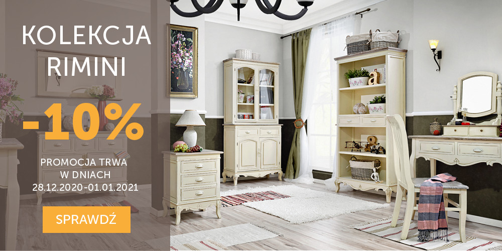 Oferujemy Państwu piękne meble z linii RIMINI o niepowtarzalnym wzornictwie i kolorystyce. Meble zmontowane przez producenta.. Wykończenie w stylu prowansalskim, shabby chic, malowane ręcznie. Kolekcja składa się z szerokiej gamy produktów - komody, regały, witryny, sekretarzyki, ławy, kredensy oraz oryginalne ozdoby.