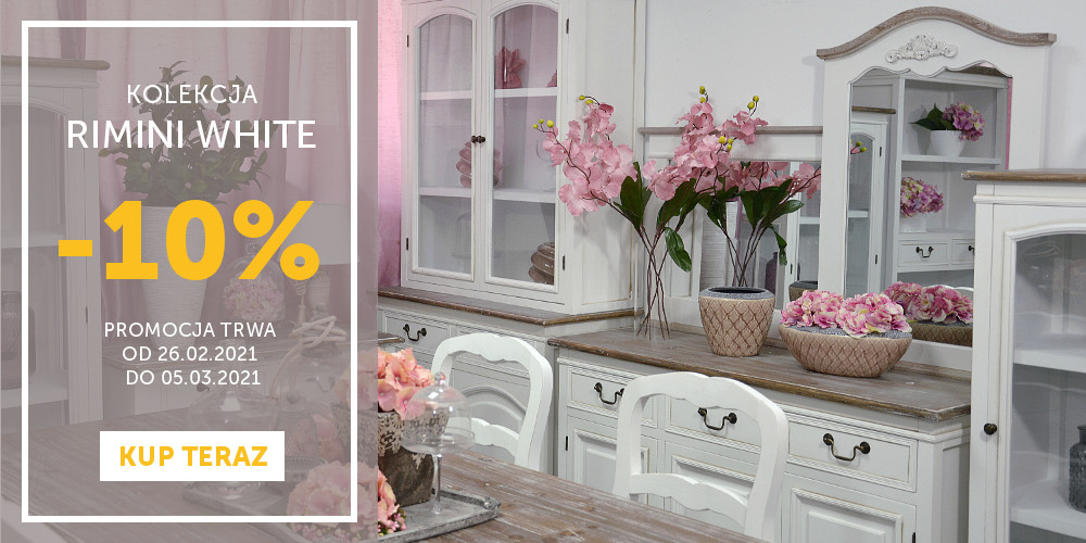 Oferujemy Państwu piękne meble z linii RIMINI WHITE o niepowtarzalnym wzornictwie i kolorystyce. Meble wykonane są z drewna egzotycznego (dodatkowo MDF). Wykończenie w stylu prowansalskim, shabby chic, malowane ręcznie. Kolekcja składa się z szerokiej gamy produktów - komody, regały, witryny, sekretarzyki, ławy, kredensy oraz oryginalne ozdoby.