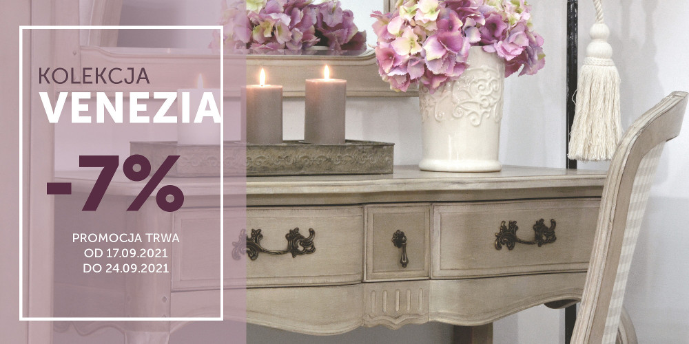 VENEZIA to stylowe, piękne meble w francuskim stylu. Dzięki szykownym i klasycznym kształtom oraz charakterystycznym detalom w postaci pięknych okuć oraz rzeźbień, doskonale wkomponują się podkreślając charakter pomieszczeń. Kolekcja VENEZIA jest wykonana z naturalnych materiałów. Ozdobne uchwyty, zaokrąglenia krawędzi jak i cała powierzchnia wykonane zostały z najwyższą starannością.