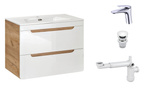 Szafka 80 cm Bahama White z Umywalką, Baterią i Syfonem z Korkiem