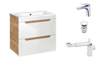 Szafka 60 cm Aruba White z Umywalką, Baterią i Syfonem z Korkiem