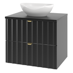 ASPEN-09 - Szafka pod Umywalkę z Blatem 2D 60cm Czarny Mat Zestaw-1 Złoty Stelaż
