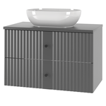 VESPER-02 - Szafka pod Umywalkę z Blatem i Regałem 2S 80cm Czarny Mat Zestaw-4