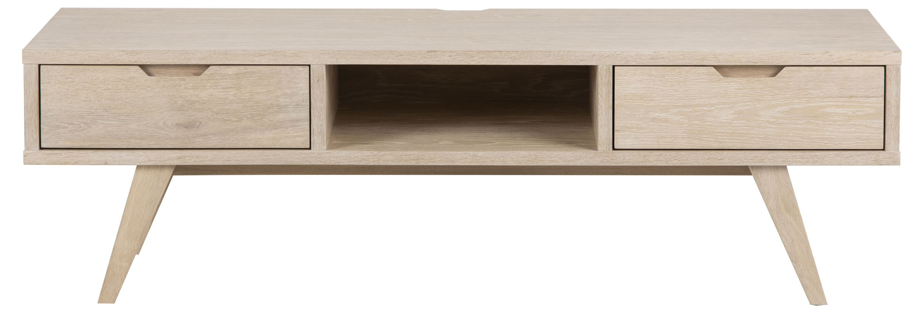 - komoda RTV A-Line, blat, rama i 2 szuflady fornir dębowy olejowany pigmentowany na biało, podstawa dąb olejowany pigmentowany na biało, 150x40x45 cm