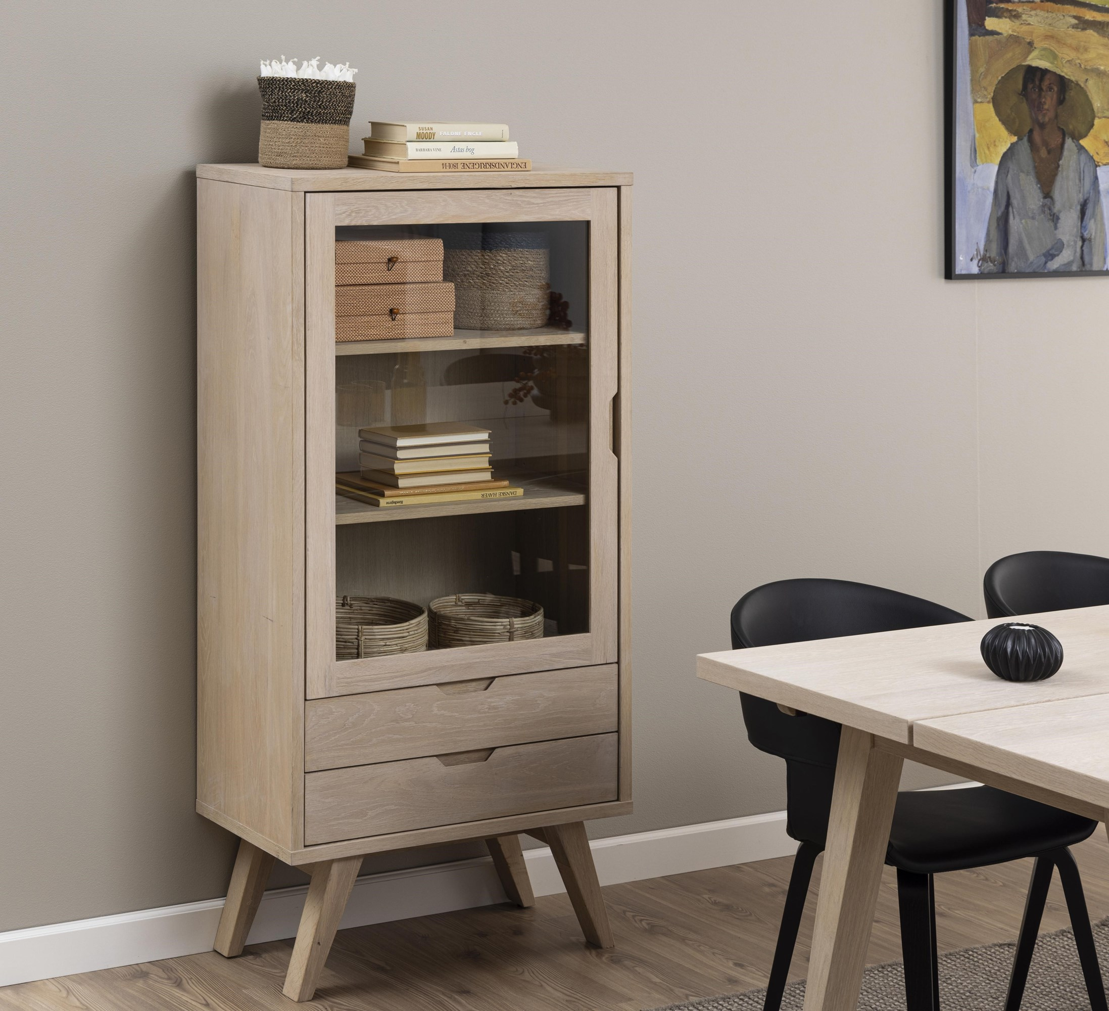 Witryna A-line bielona – Skandynawska funkcjonalność w drewnie dębowym