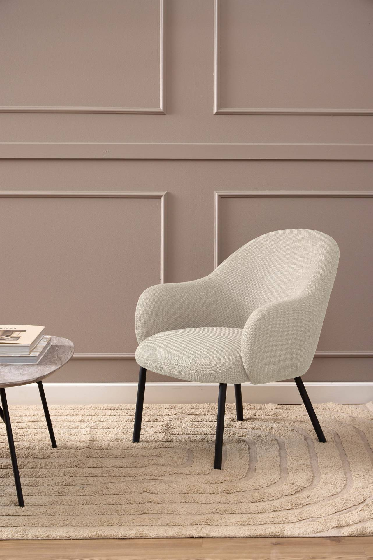 - Fotel Spencer od Actona to elegancki mebel o zaokrąglonej sylwetce, pokryty strukturalną, beżową tkaniną w dwukolorowym efekcie. Stabilność zapewniają okrągłe, czarne stalowe nogi. Idealny do każdego wnętrza, łączy skandynawski design z funkcjonalnością.