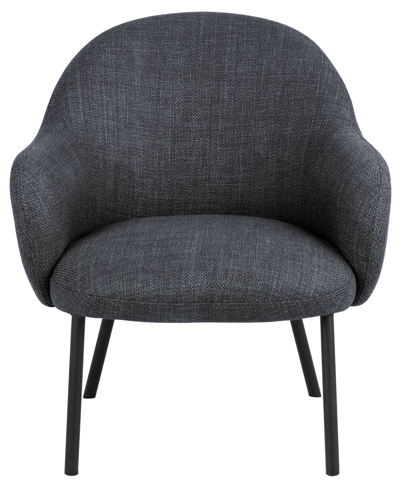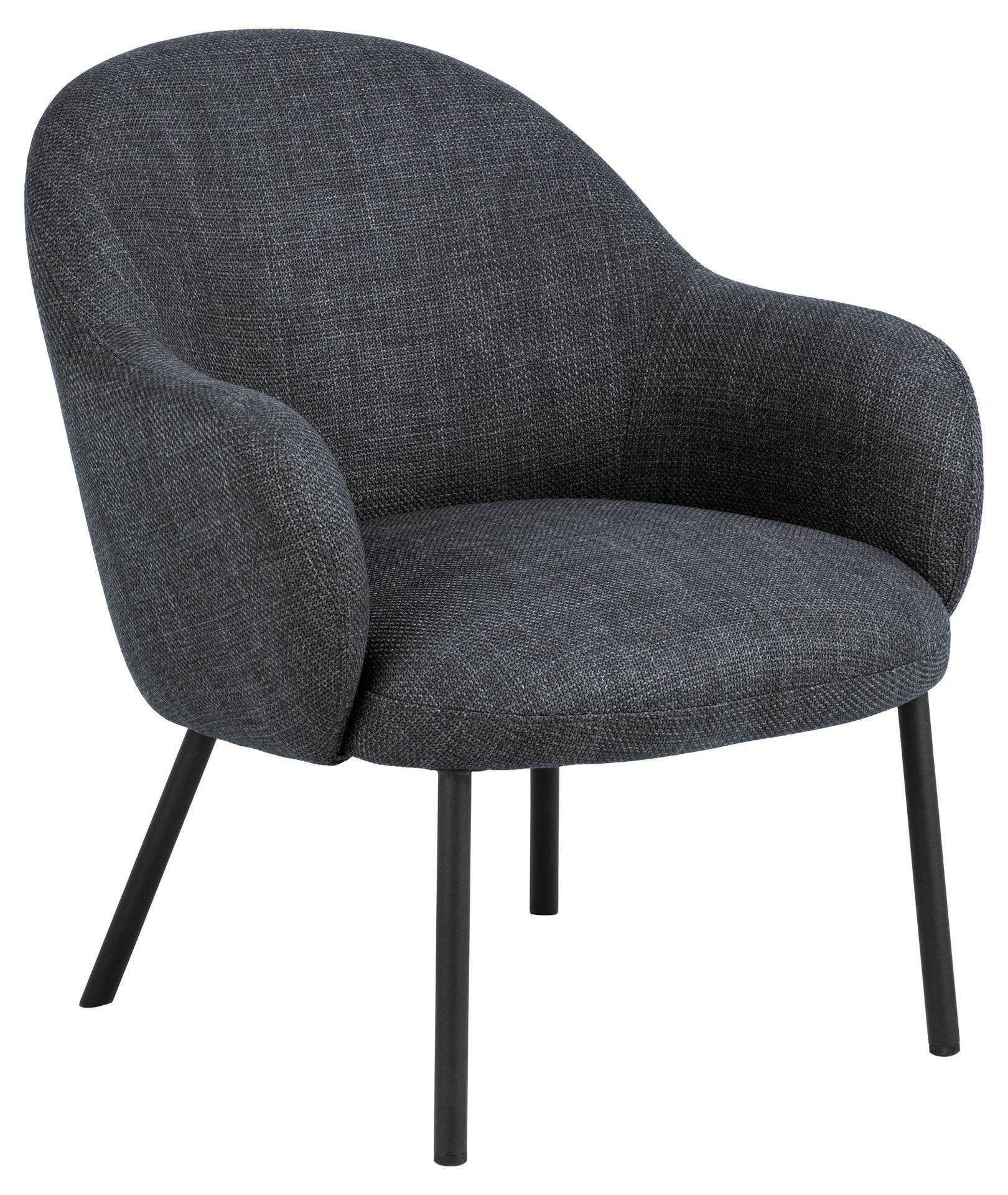 Fotel Spencer od Actona to elegancki mebel o zaokrąglonym kształcie, tapicerowany ciemnoszarym materiałem o dwukolorowym efekcie. Stabilne, okrągłe nogi ze stali w czarnym matowym wykończeniu dodają mu nowoczesnego charakteru. Idealny do każdego wnętrza!