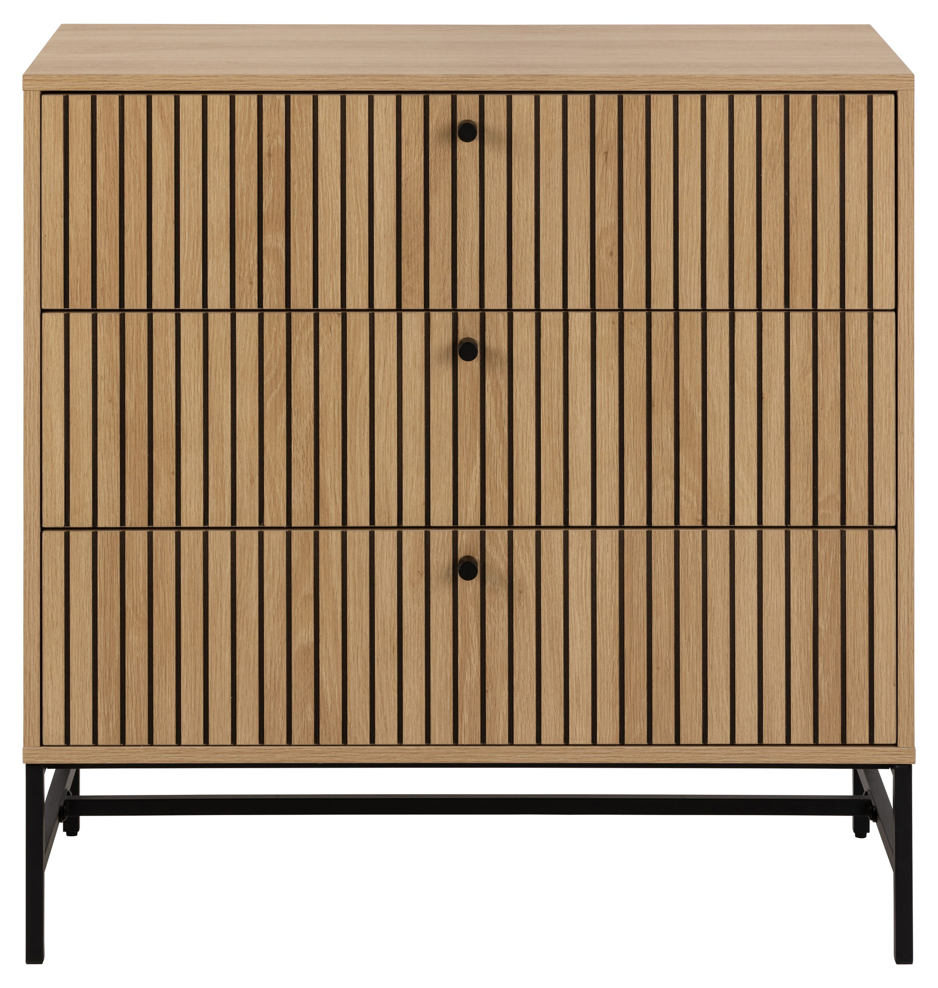 Komoda Actona Albany łączy naturalny dąb z czarnymi akcentami, tworząc harmonijną całość. Wyposażona w 3 praktyczne szuflady, oferuje mnóstwo miejsca na przechowywanie. Jej łatwa w pielęgnacji powierzchnia oraz nowoczesny design czynią ją idealnym meblem.