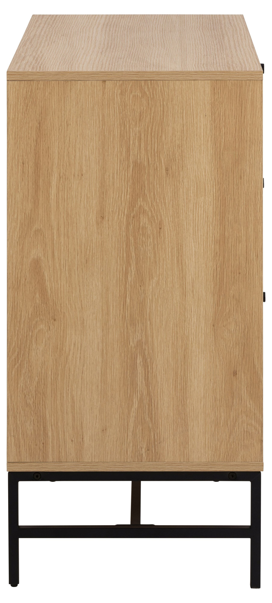 Wprowadź do swojego wnętrza wyjątkowy styl z komodą Actona Albany w odcieniu dębu naturalnego. Jej elegancki design z lamelowym frontem przyciąga wzrok i dodaje przestrzeni nowoczesnego charakteru. Czarne akcenty nóg wykonanych ze stali powlekanej zapewniają interesujący kontrast, który podkreśli zarówno klasyczne, jak i nowoczesne aranżacje. Dzięki swoim proporcjom – szerokości 80,6 cm i wysokości 80,4 cm – komoda idealnie wpasuje się w różnorodne wnętrza, od sypialni po salon.