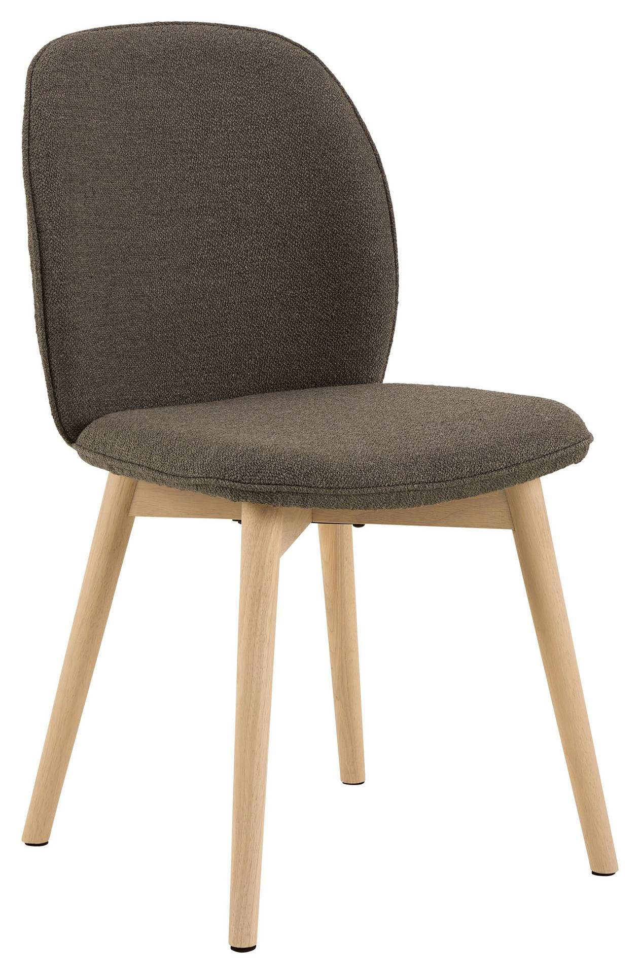 Krzesło do jadalni Cindy od Actona w odcieniu szarości łączy nowoczesny styl z komfortem. Miękka tapicerka bouclé, zaokrąglone oparcie oraz nogi z bielonego dębu nadają mu nordycki charakter. Idealne do eleganckiego wnętrza!