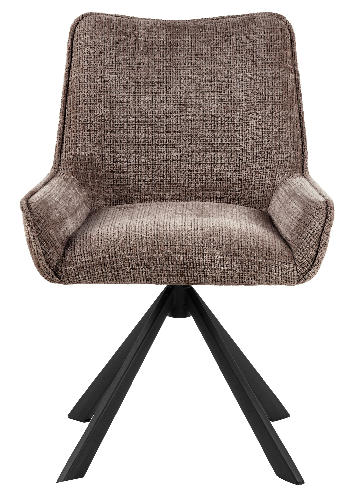 • Krzesło jadalniane Actona Eddie w kolorze brązowym to kwintesencja elegancji. Miękka tkanina o delikatnej strukturze oraz subtelne zaokrąglenia siedziska z dekoracyjnym obszyciem tworzą wyjątkowy design. Obrotowa podstawa z czarnej stali.