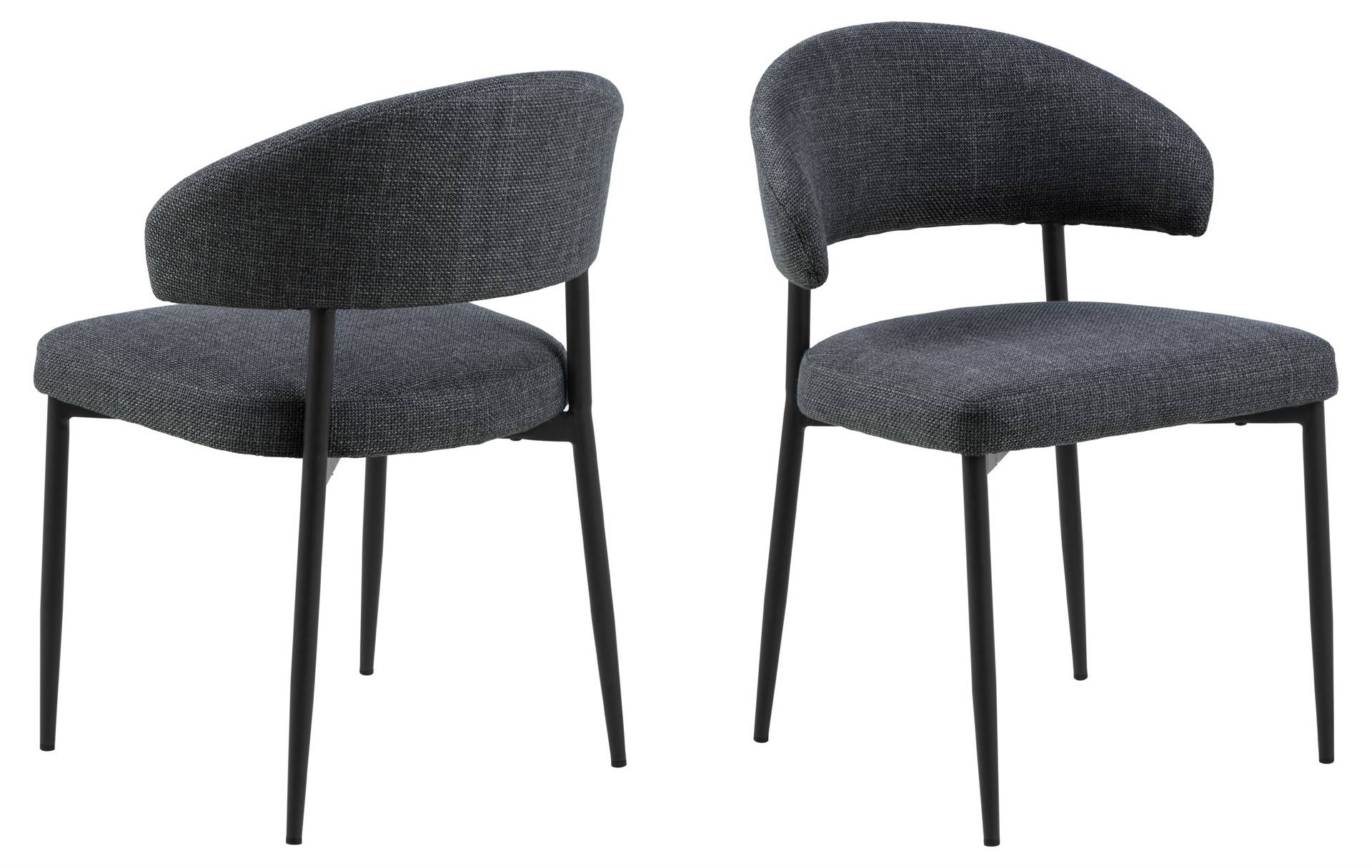 - Ożyw swoją jadalnię eleganckim krzesłem Edina w ciemnoszarym kolorze. Otwarta konstrukcja z półksiężycowymi oparciami oraz teksturowanym pokryciem zapewnia styl i komfort. Czarny stelaż stalowy oraz zaokrąglone siedzisko dopełniają całość.