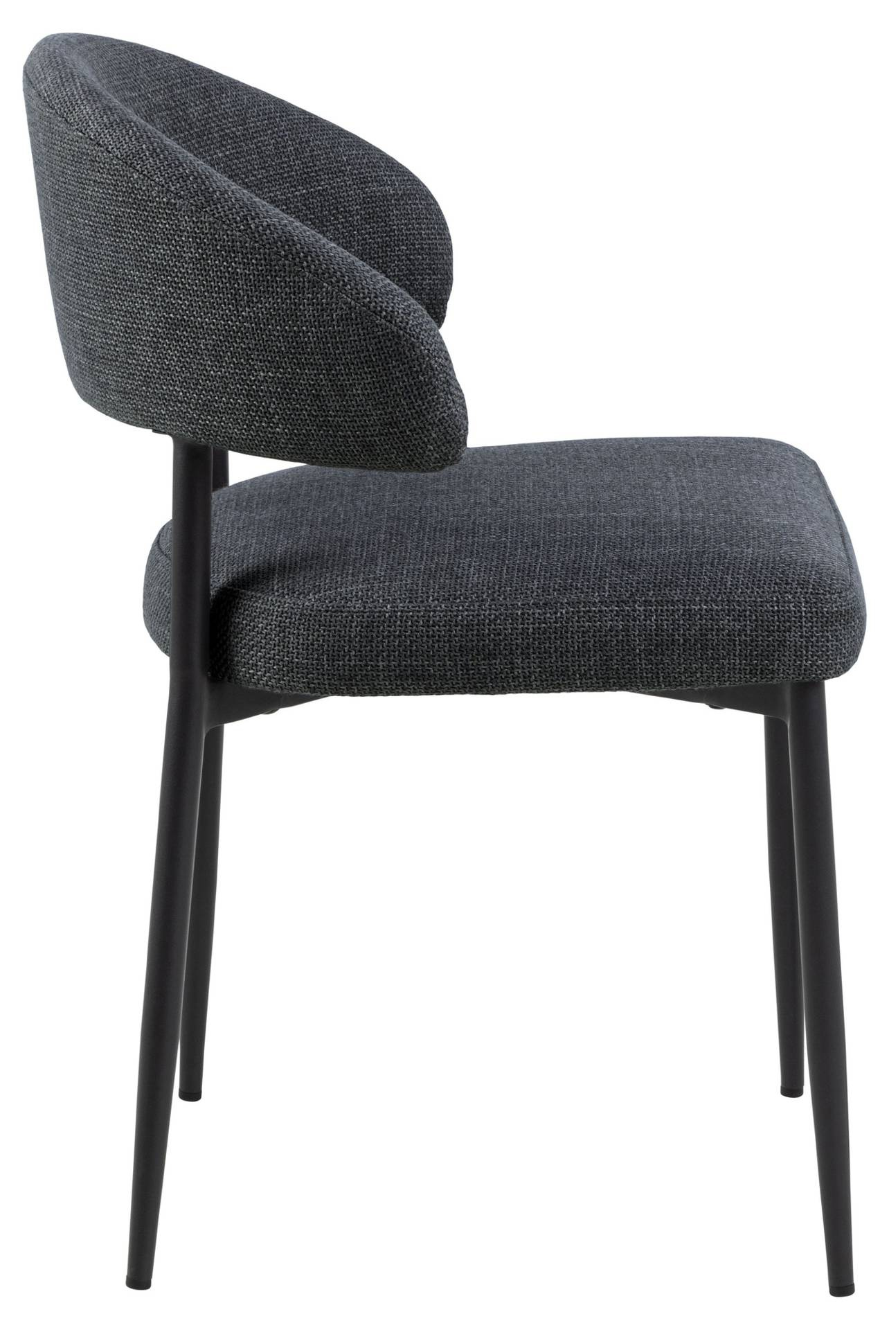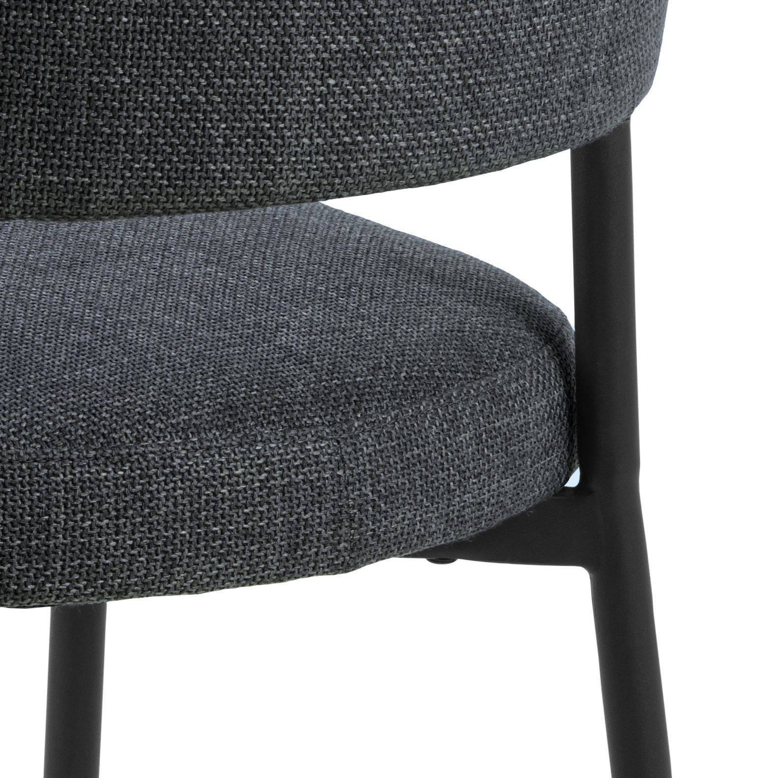Ożyw swoją jadalnię eleganckim krzesłem Edina w ciemnoszarym kolorze. Otwarta konstrukcja z półksiężycowymi oparciami oraz teksturowanym pokryciem zapewnia styl i komfort. Czarny stelaż stalowy oraz zaokrąglone siedzisko dopełniają całość.