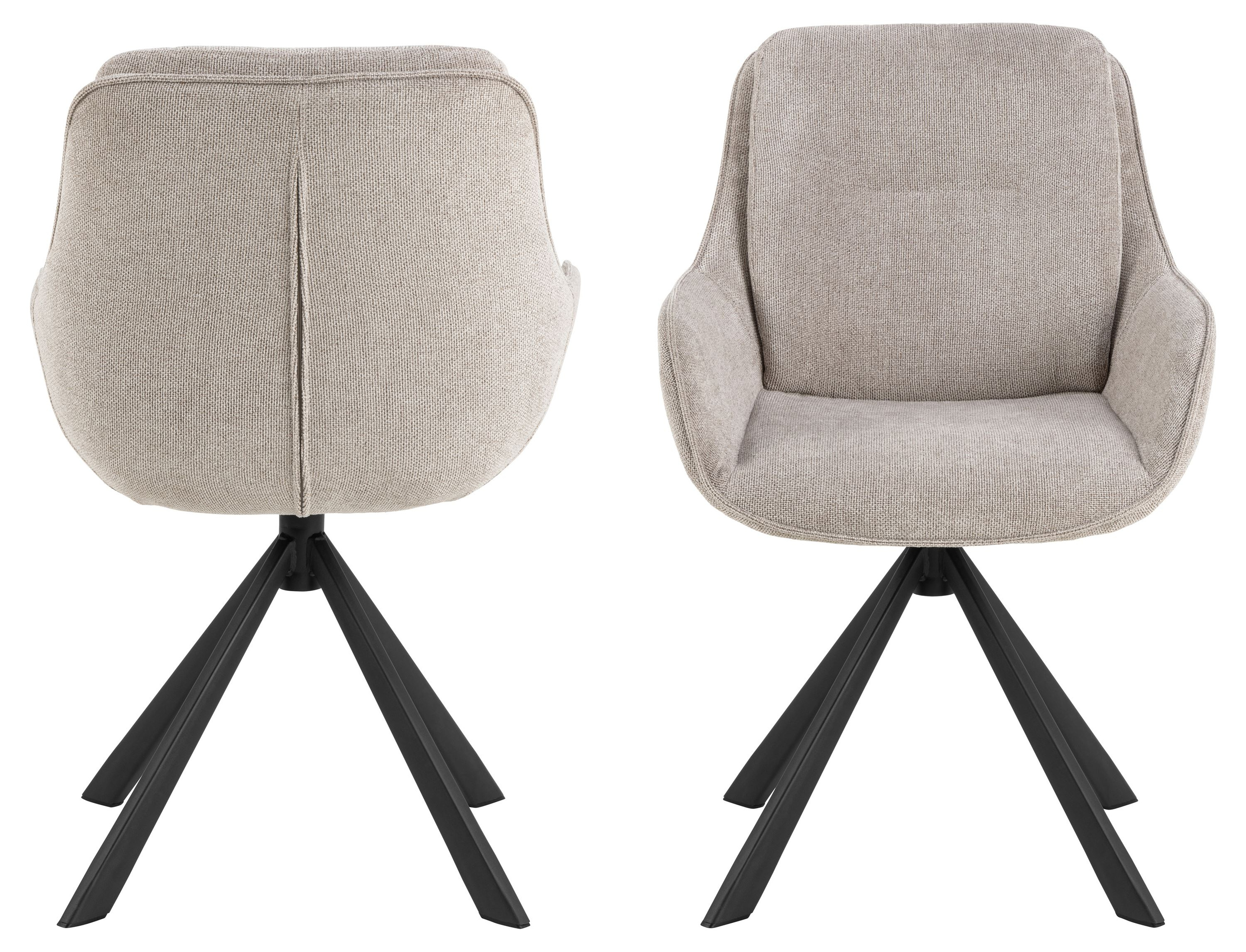 - Krzesło jadalniane Carrie z podłokietnikami zachwyca eleganckimi liniami i miękkim, piaskowym obiciem z chenilli. Dodatkowa warstwa przy oparciu zapewnia komfort, a czarna, obrotowa podstawa sprawia, że ruch w nim jest lekki. Idealne do Twojej jadalni!