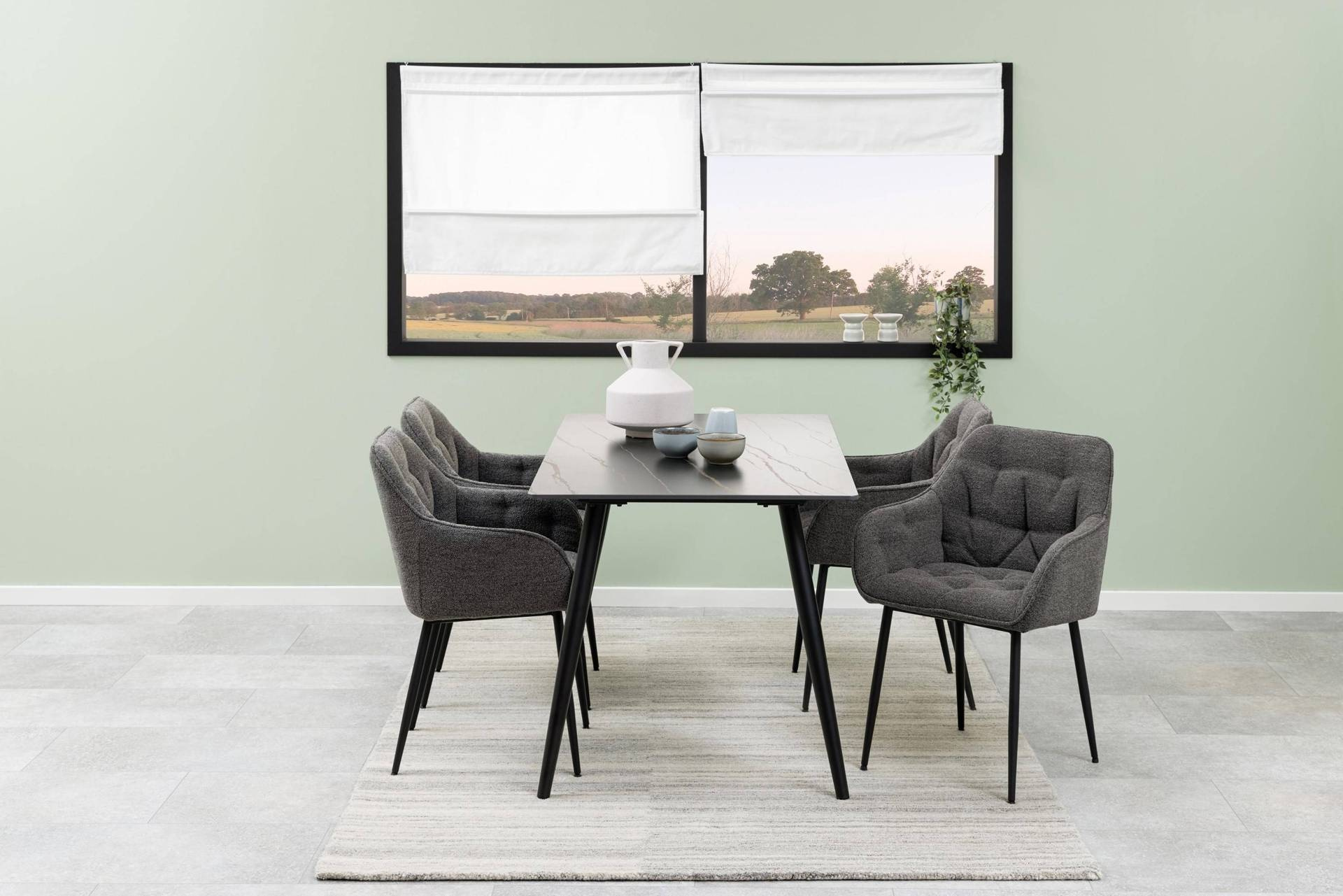 - Szare krzesło z podłokietnikiem Brooke to eleganckie i wygodne siedzisko, idealne do jadalni lub salonu. Solidna konstrukcja i nowoczesny design pasują do wielu aranżacji wnętrz.