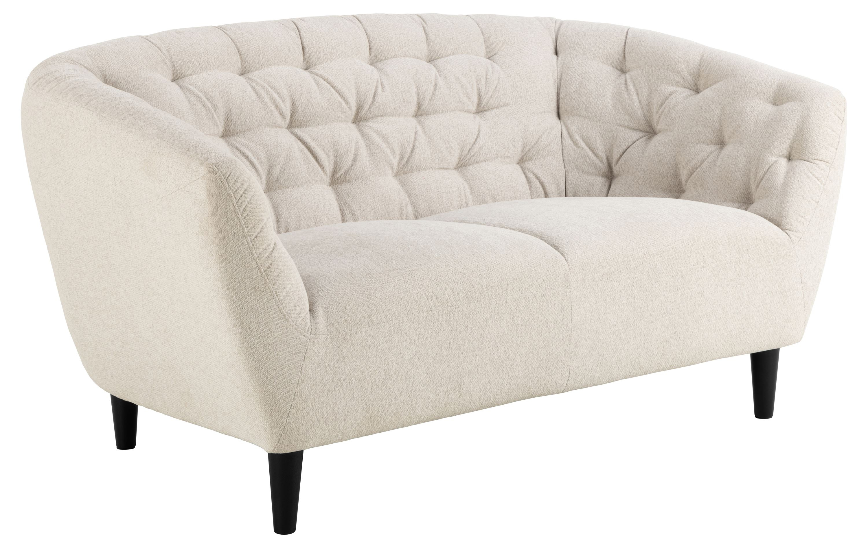 Sofa Actona Ria w kolorze beżowym to elegancki, dwuosobowy mebel o zaokrąglonym kształcie, zapewniający wyjątkowy komfort dzięki sprężynom kieszeniowym. Eleganckie pikowanie oraz czarne, zaokrąglone nogi dodają jej klasy i stylu. Idealna do każdego salonu