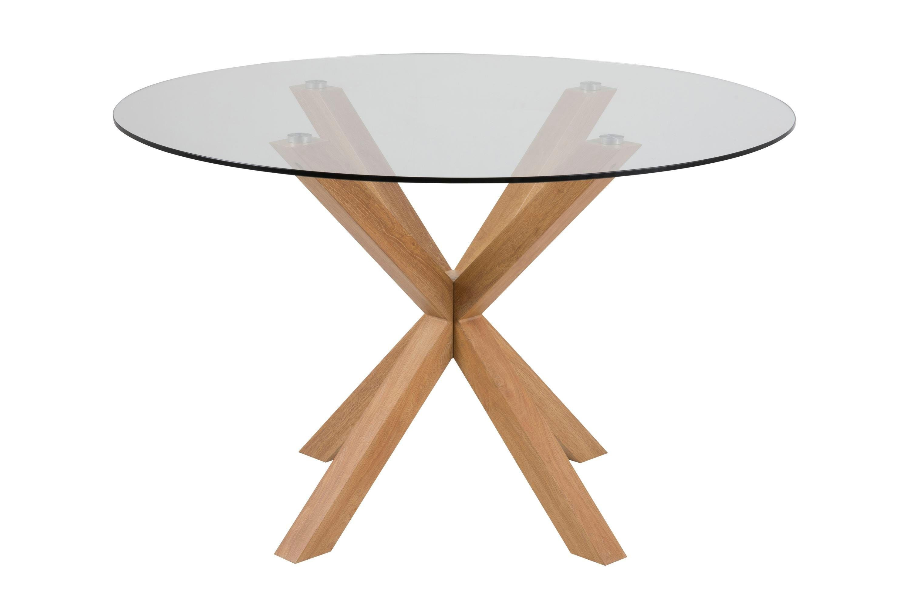 Elegancki stół jadalniany Heaven ze szklanym blatem i dębowymi nogami.