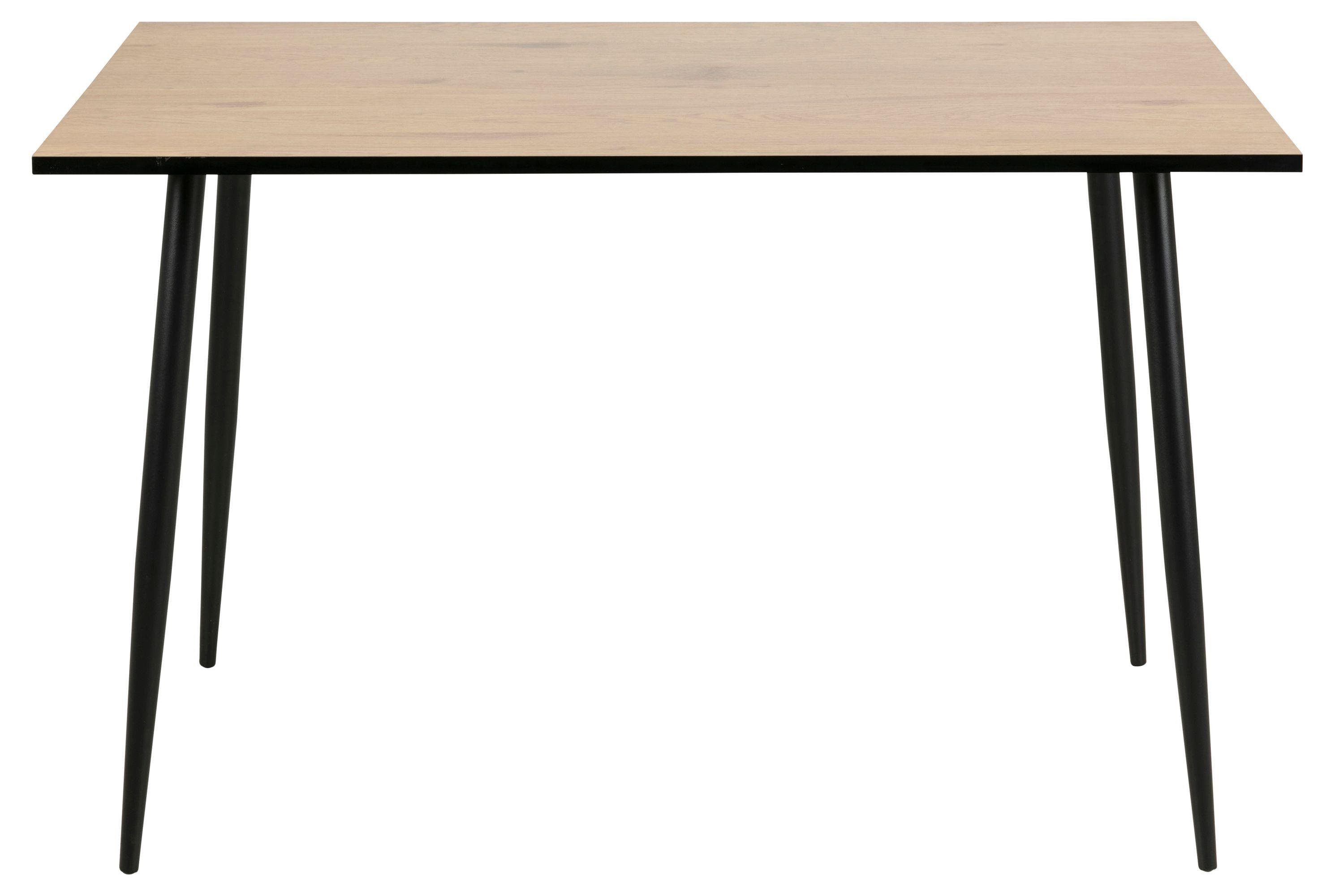 Prostokątny stół jadalniany Wilma, z blatem w kolorze dzikiego dębu, na czarnych metalowych nogach.