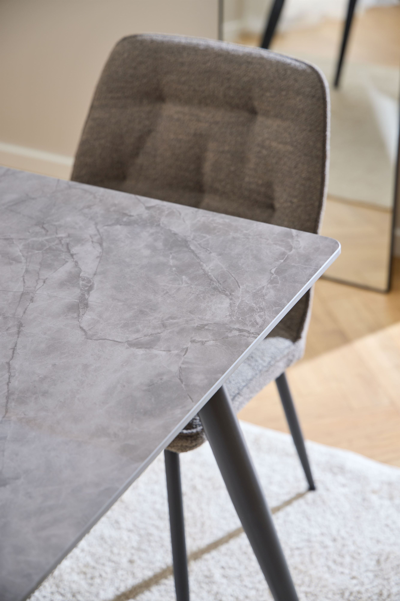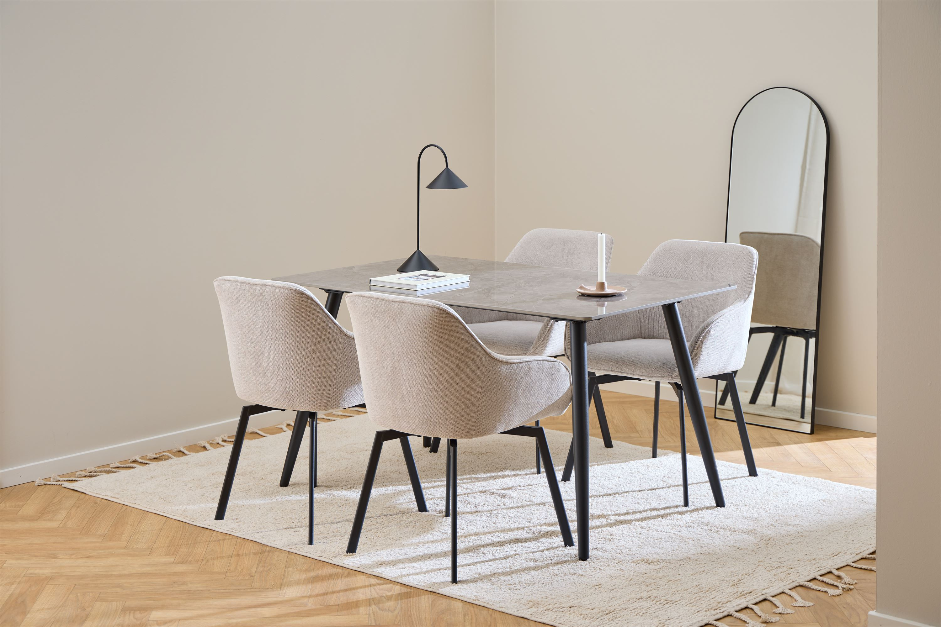 Stół jadalniany Wicklow marki Actona łączy nowoczesny minimalizm z funkcjonalnością. Blat z odpornej na zarysowania i ciepło ceramiki w kolorze szarym, wsparty na eleganckich, stożkowych nogach ze stali w matowym czarnym wykończeniu, pomieści do 4 osób.