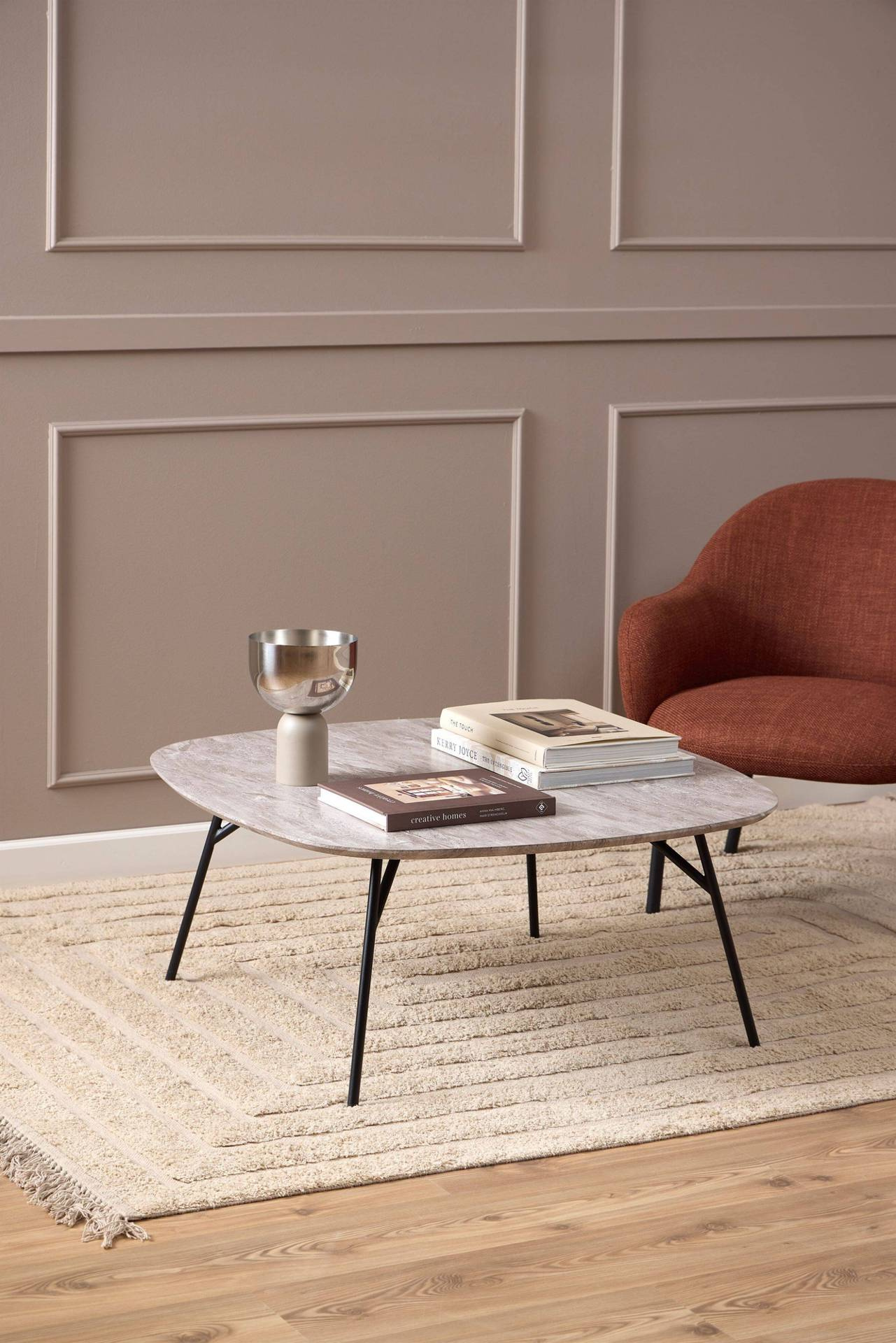 Stolik kawowy Caracas to doskonałe połączenie elegancji i nowoczesności. Blat z olejowanego dębu w kolorze szarego marmuru River przyciąga uwagę, a stalowe czarne, matowe nogi dodają mu industrialnego charakteru. Idealny wybór do stylowego wnętrza.