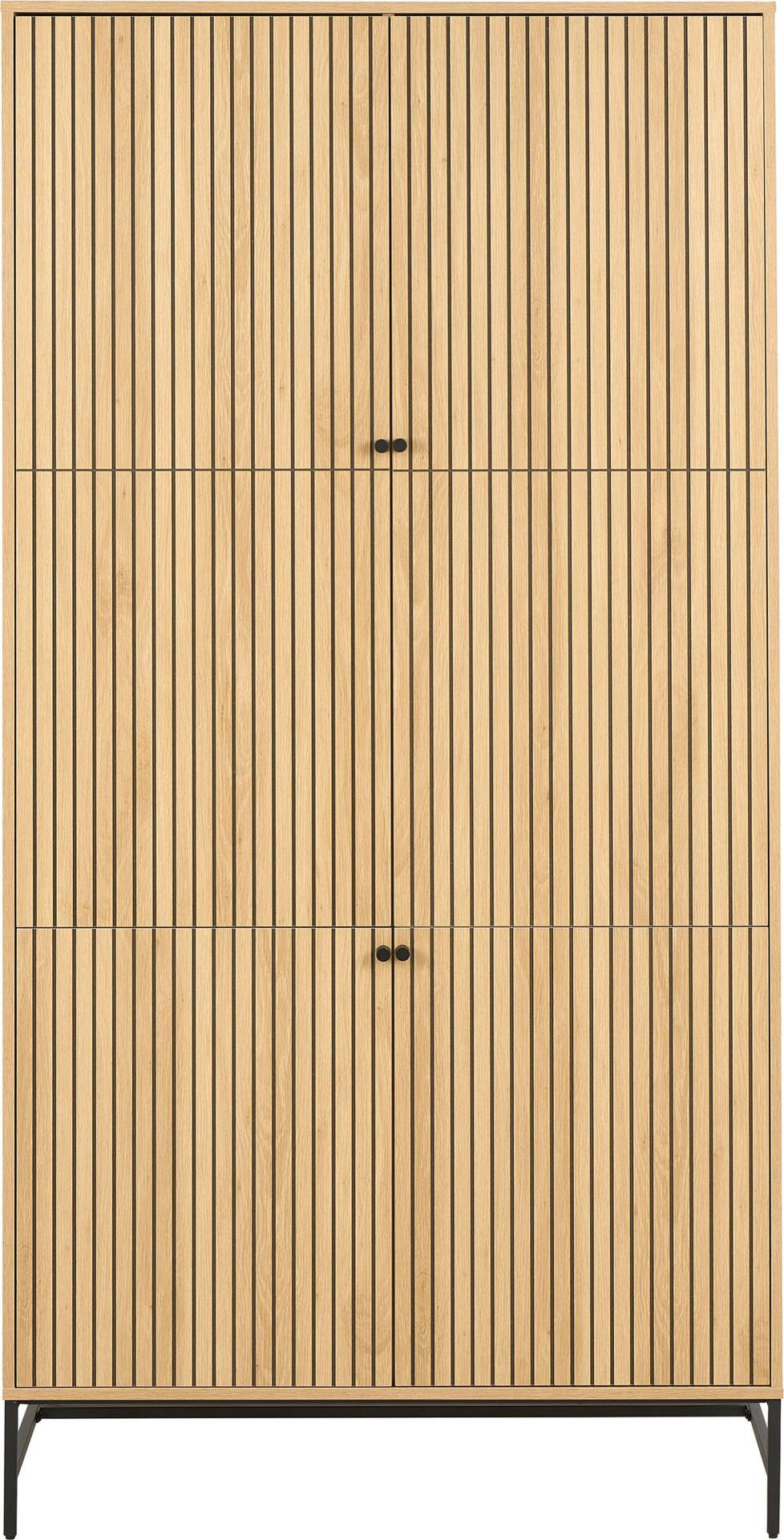 Szafa 4-drzwiowa Albany w odcieniu dębu naturalnego to idealne połączenie stylu i funkcjonalności. Z sześcioma półkami oraz drążkiem na ubrania zapewnia przestronność. Jej łatwa w utrzymaniu powierzchnia i stalowa podstawa nadają nowoczesny styl.