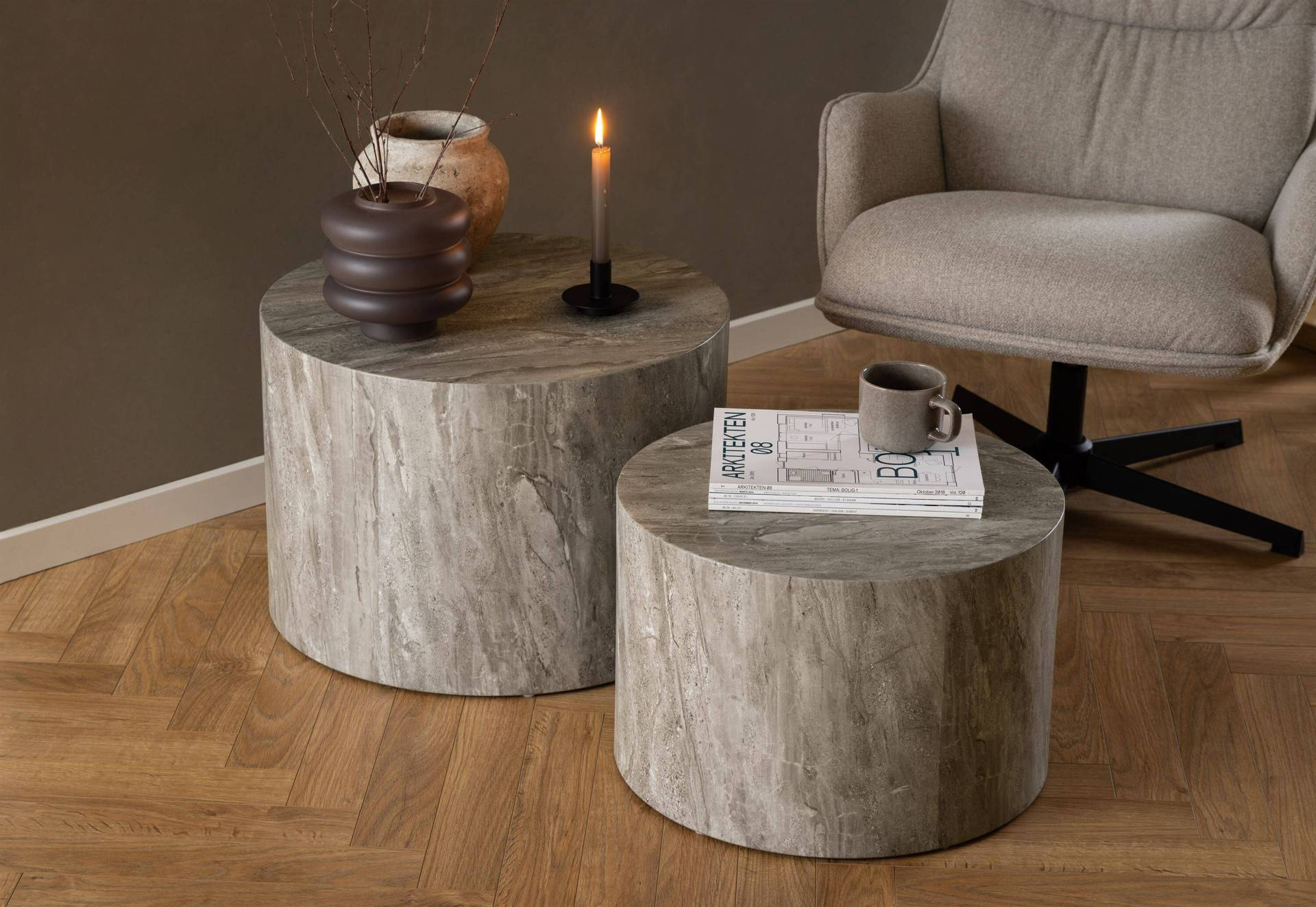 Actona Zestaw Stolików Kawowych Dice Szary Marmur River