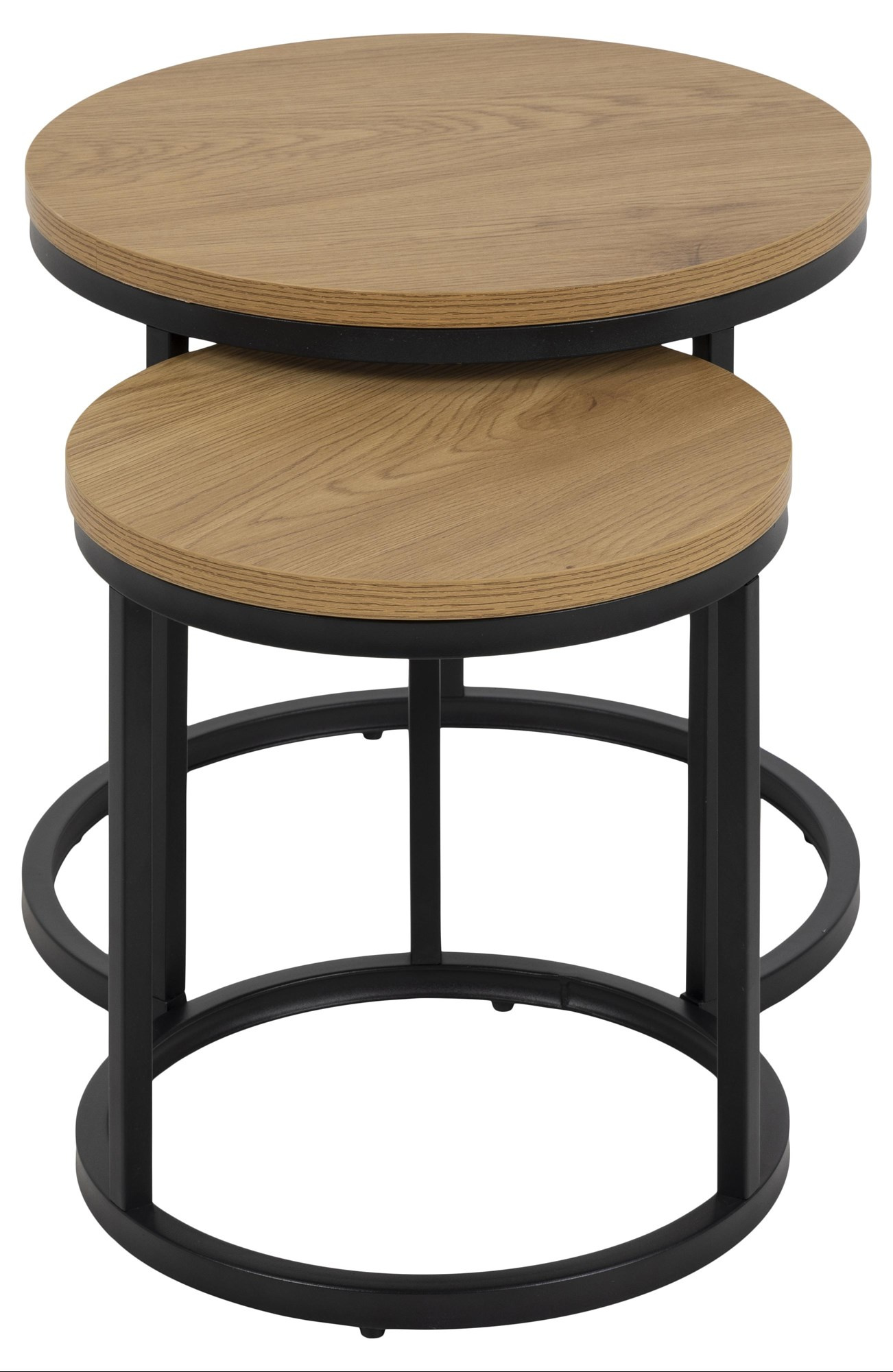 Actona Zestaw Stolików Okrągłych Spiro Czarny Mat Dąb