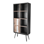 - Regał w stylu retro z oryginalnymi frontami z drewna i metalowymi nogami. Czarny korpus idealnie współgra z frontami w odcieniach szarości i beżu. Regał posiada przesuwne drzwi.