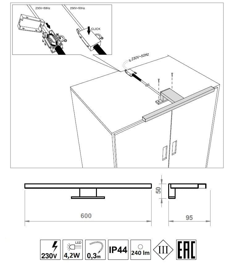 Jej smukła sylwetka i minimalistyczny design sprawiają, że jest doskonałym wyborem do nowoczesnych aranżacji. Świetnie sprawdzi się nad szafką, lustrem lub w kuchni, tworząc przyjemny klimat, który sprzyja relaksowi i codziennym czynnościom. Lampa emituje neutralne, białe światło o temperaturze 4000 K, co gwarantuje doskonałe odwzorowanie kolorów, idealne do wykonywania precyzyjnych zadań lub po prostu do cieszenia się recenzowanym otoczeniem.