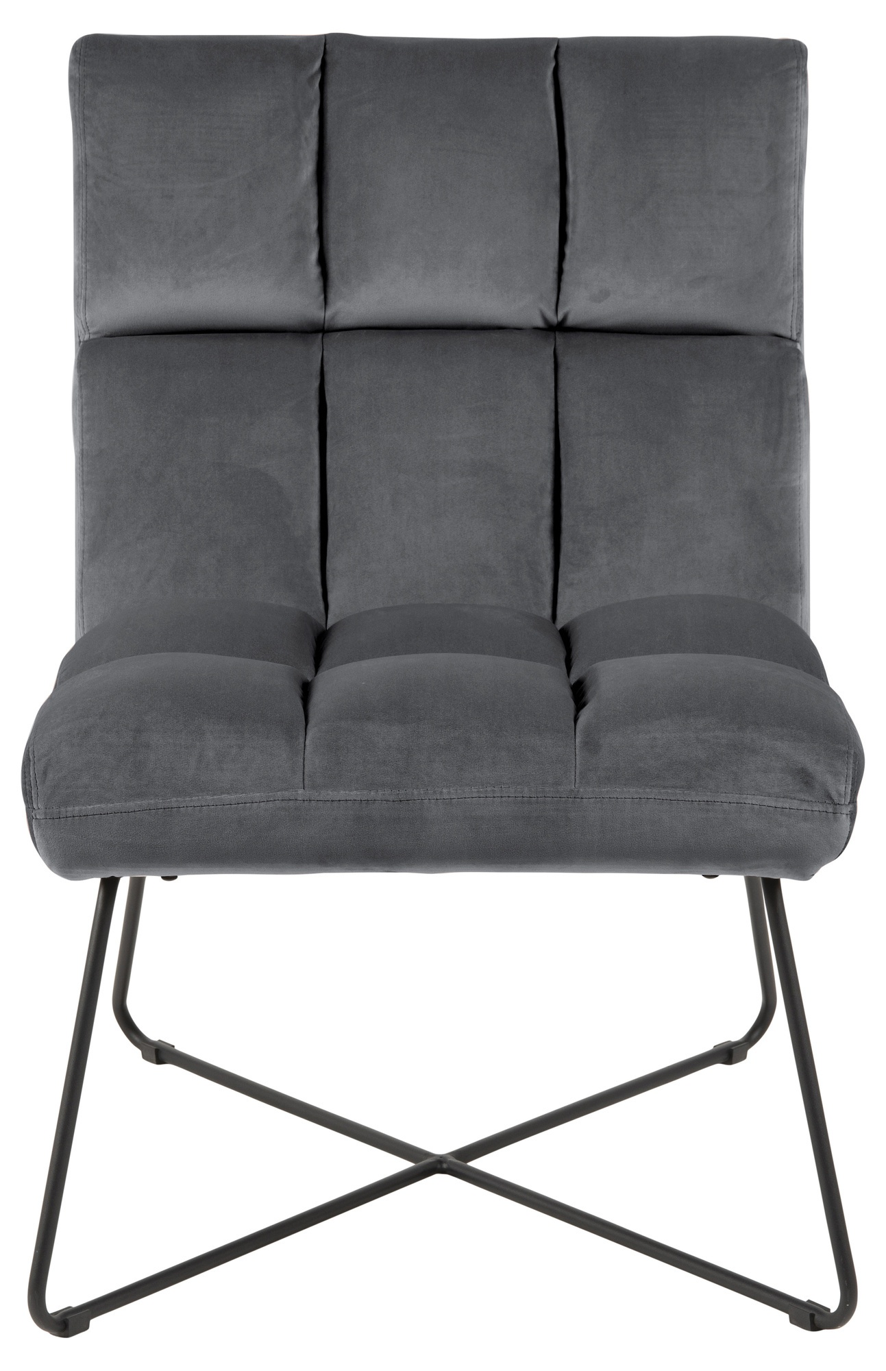 • Fotel wypoczynkowy Alba, tkanina VIC ciemnoszara 28, podstawa czarna matowa szorstka malowana proszkowo, z kwadratowymi przeszyciami i zamkiem błyskawicznym, 62x86x90 cm