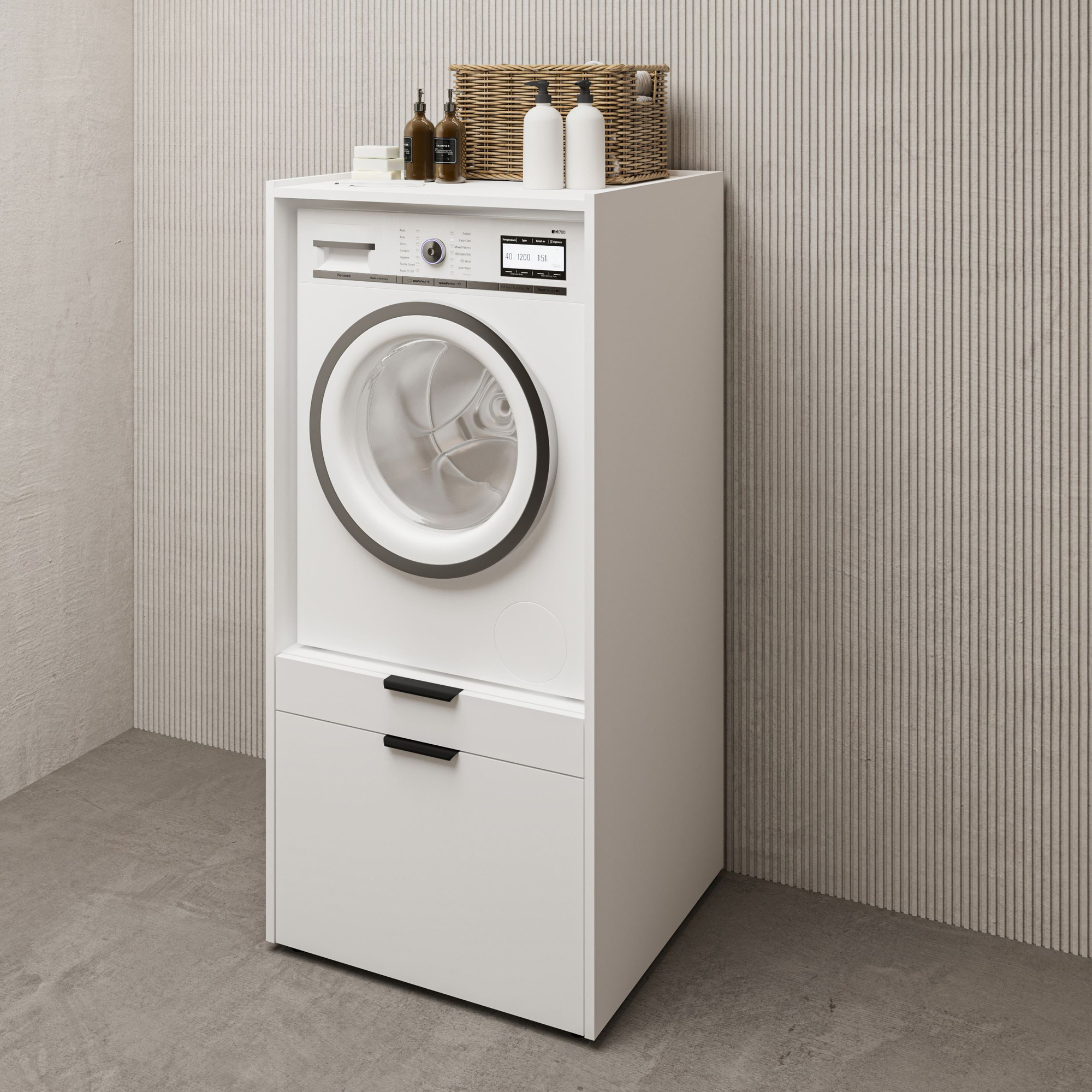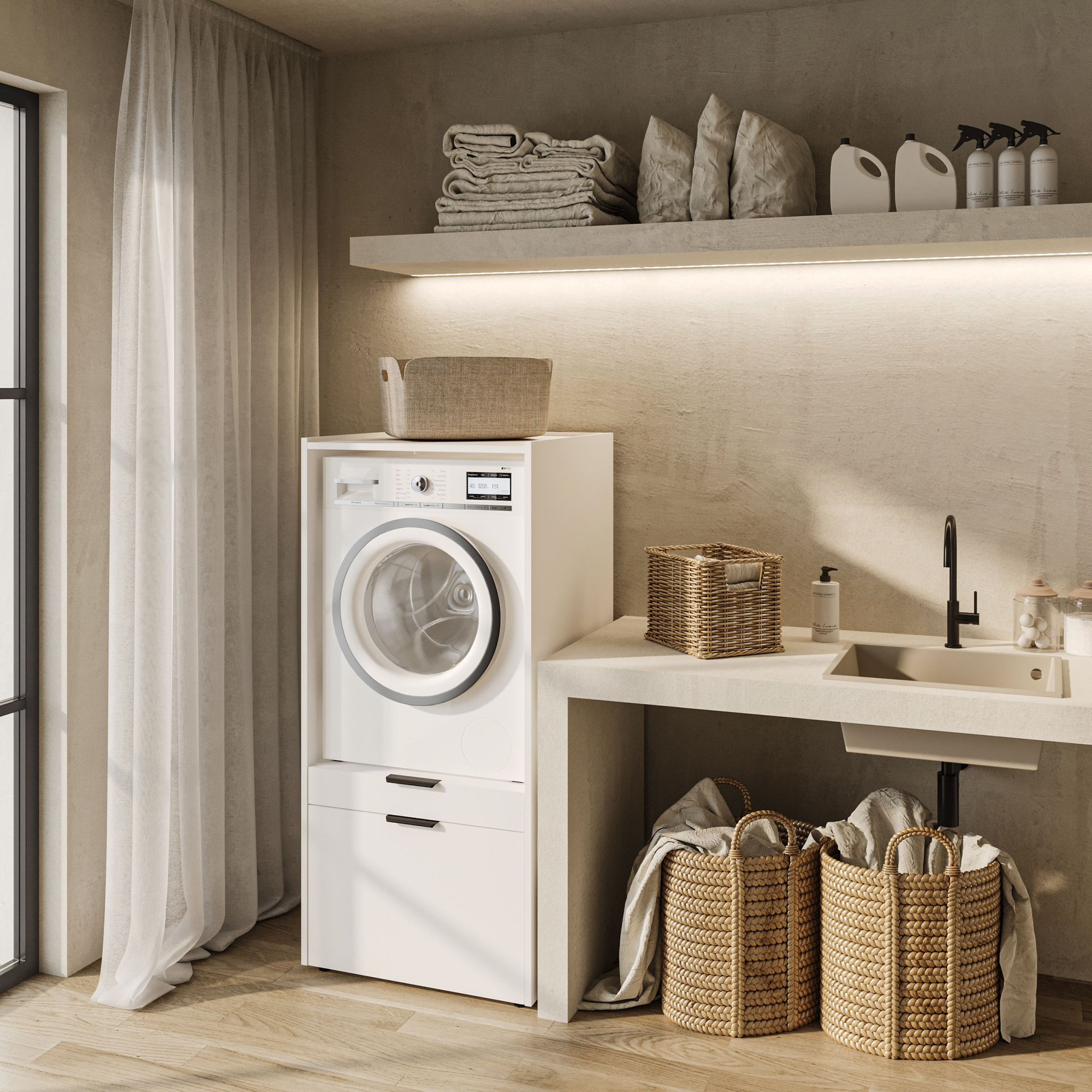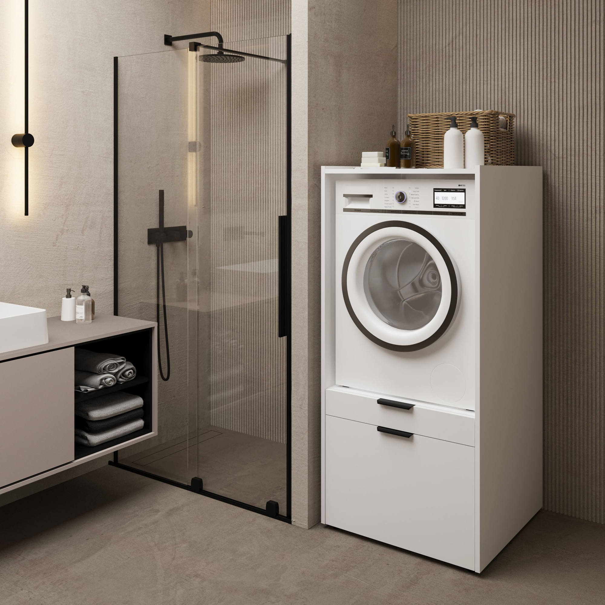 Odkryj nowy wymiar organizacji w swoim domu dzięki wyjątkowej zabudowie na pralkę i suszarkę Andiamo od marki Helvetia. Zaprojektowana w eleganckim białym macie, doskonale wtapia się w każdą przestrzeń, nadając jej nowoczesny i minimalistyczny charakter. Dzięki tej zabudowie zyskujesz nie tylko funkcjonalne miejsce na urządzenia, ale także estetyczny element wnętrza, który skutecznie ukryje wszystkie nieestetyczne przewody i akcesoria.