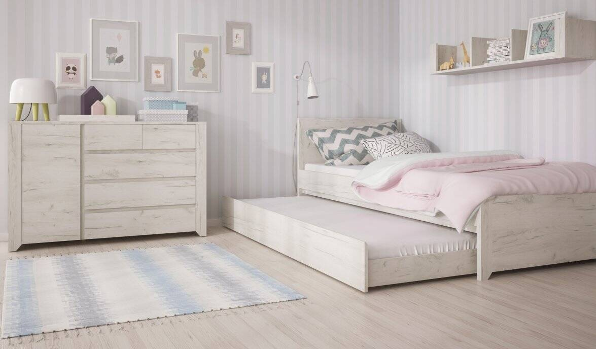 Zawiasy puszkowe gwarantują płynne i bezgłośne zamykanie drzwi, zachowując spokój i ciszę w sypialnianej przestrzeni. Dodatkowo, stopki wykonane z trwałego tworzywa sztucznego zapewniają stabilność mebla oraz ochronę podłogi przed zarysowaniami.