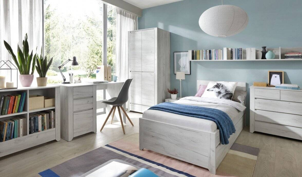 Biały kolor szafy Angel nie tylko rozświetla pomieszczenie, lecz także pozwala na łatwe wkomponowanie jej w różnorodne aranżacje, zarówno te utrzymane w minimalistycznym, jak i bardziej dekoracyjnym duchu. Wybarwienie "Naturalny" dodaje wnętrzu ciepła, co sprawia, że sypialnia staje się przytulniejsza.