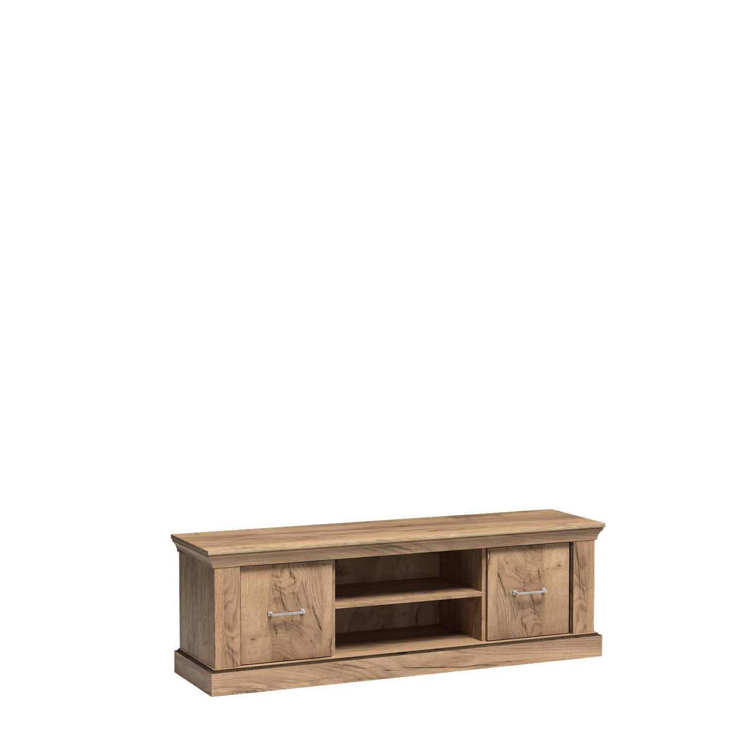 Komoda RTV ANTICA-15 to elegancki mebel w kolorze Kraft Złoty, idealny do każdego salonu. Dzięki pojemnym szafkom i środkowej półce zmieści nie tylko telewizor, ale i ozdoby. Cichy domyk dodaje jej subtelności. Prosta w montażu.
