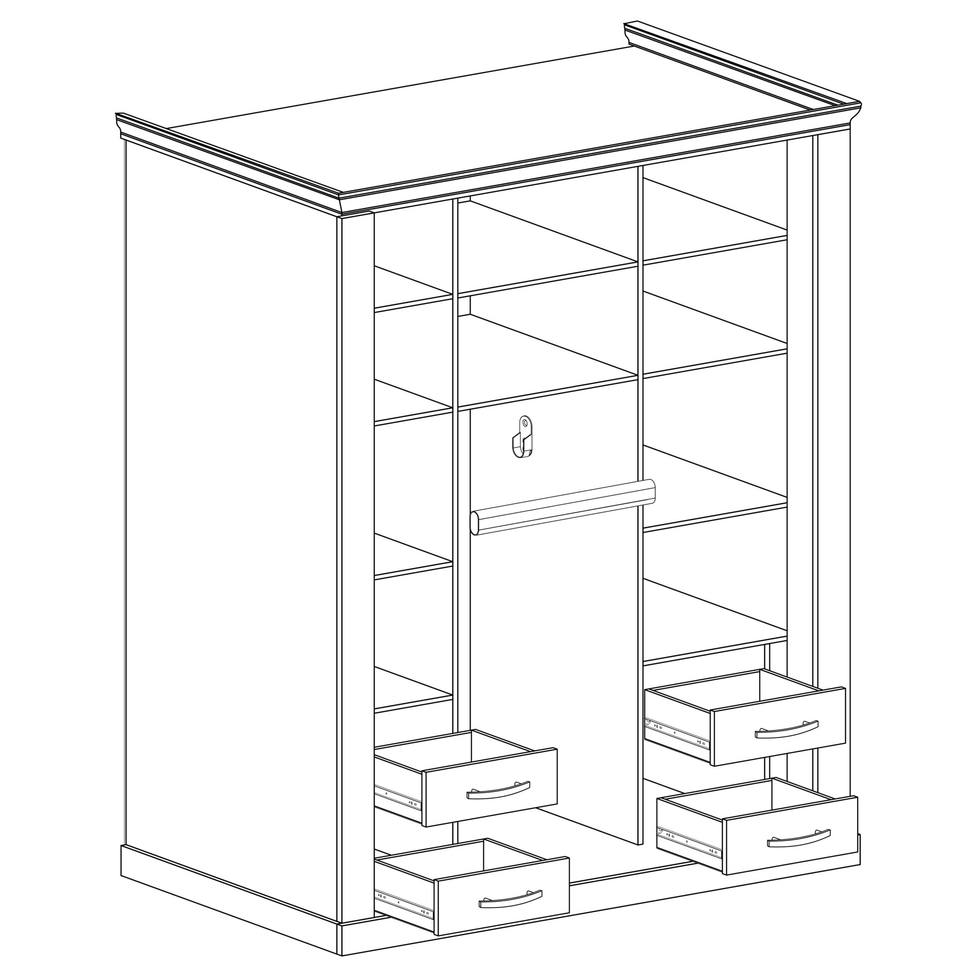 Szafa Antica-183 to nie tylko mebel, ale również inteligentne rozwiązanie dla Twojej przestrzeni. Pojemność i organizacja są kluczowe – z czterema przestronnymi szufladami oraz siedmioma półkami, z łatwością pomieścisz wszystkie swoje ubrania oraz akcesoria. Dzięki temu, że w jej wnętrzu znajduje się drążek, masz również możliwość zawieszenia odzieży, co pozwala na maksymalne wykorzystanie dostępnej przestrzeni. Już nigdy więcej nie będziesz musiał martwić się o bałagan!