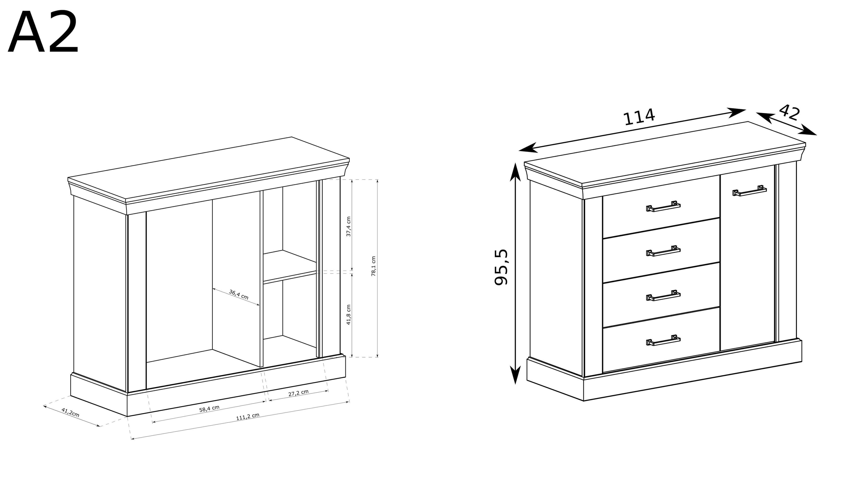 Komoda ANTICA-2 nie tylko spełnia funkcje przechowywania, ale także pełni rolę dekoracyjną. Ta stylowa propozycja doskonale wpisuje się w nowoczesne oraz klasyczne aranżacje, stanowiąc elegancki akcent w każdym pomieszczeniu. Dzięki swoim wymiarom (114 cm szerokości, 95,5 cm wysokości i 42 cm głębokości) nie zajmuje zbyt wiele przestrzeni, jednocześnie oferując wystarczającą pojemność, aby zaspokoić wszystkie Twoje potrzeby przy organizacji wnętrza. Przekonaj się, jak ta komoda może odmienić Twoje wnętrze, nadając mu nowego wyrazu i klasy.