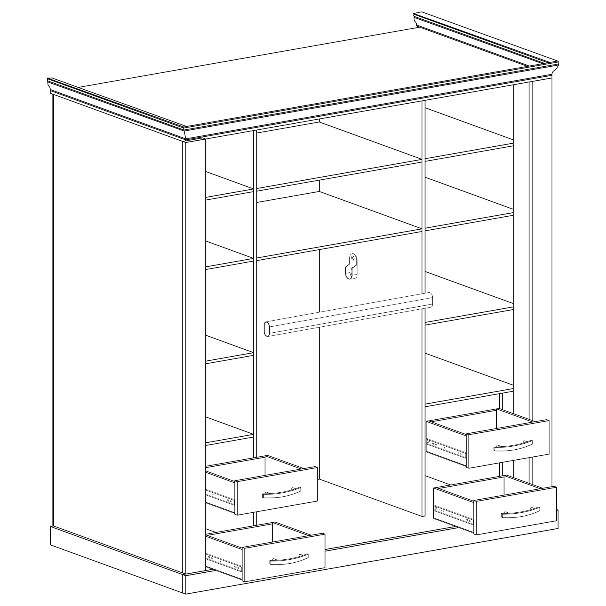 Szafa Antica-211 wyróżnia się nie tylko pięknym wyglądem, ale także przemyślaną funkcjonalnością. Z czterema szufladami oraz dodatkowymi ośmioma półkami, zyskujesz mnóstwo miejsca na wszystkie Twoje ubrania i akcesoria. Niezależnie czy chcesz przechowywać swoje ulubione sukienki, czy codzienne ubrania, ten mebel znakomicie sprosta Twoim oczekiwaniom. Dodatkowo, drążek na ubrania pozwoli na wygodne zawieszenie garderoby, co znacząco ułatwi organizację przestrzeni.