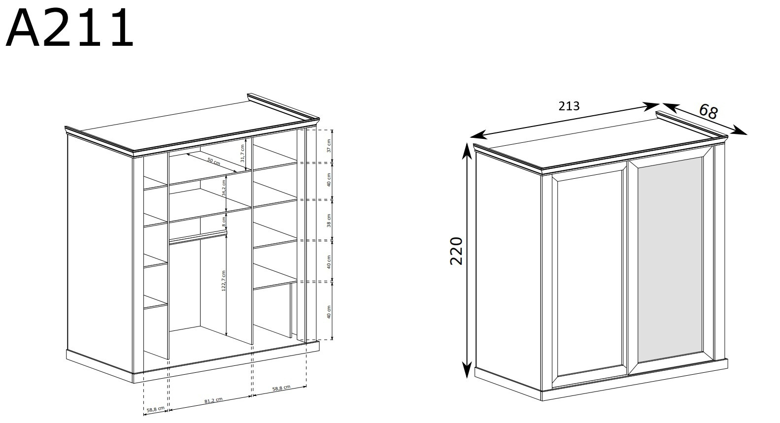 Szafa ta będzie doskonałym uzupełnieniem każdej sypialni, przedpokoju czy salonu, a jej uniwersalny design pozwala na tworzenie różnorodnych aranżacji. Niezależnie od stylu, w jakim urządzony jest Twój dom, szafa Antica-211 wkomponuje się w każde wnętrze, nadając mu harmonijnego i eleganckiego wyglądu. Warto podkreślić, że ten mebel spełni wymagania zarówno miłośników klasyki, jak i nowoczesnych trendów.