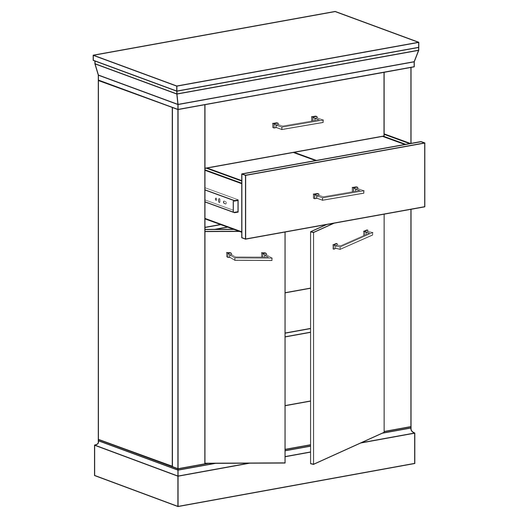 Ta funkcjonalna komoda została zaprojektowana z myślą o Twojej wygodzie. Dwie przestronne szuflady pomogą Ci zorganizować wszystkie niezbędne akcesoria czy dokumenty, a dolna część mebla, podzielona na dwie półki, umożliwia przechowywanie większych przedmiotów. Dzięki temu zawsze będziesz miał wszystko pod ręką, a porządek w Twoim domu stanie się czymś naturalnym.