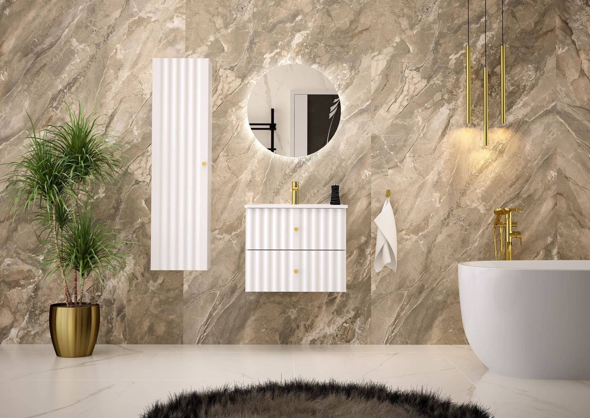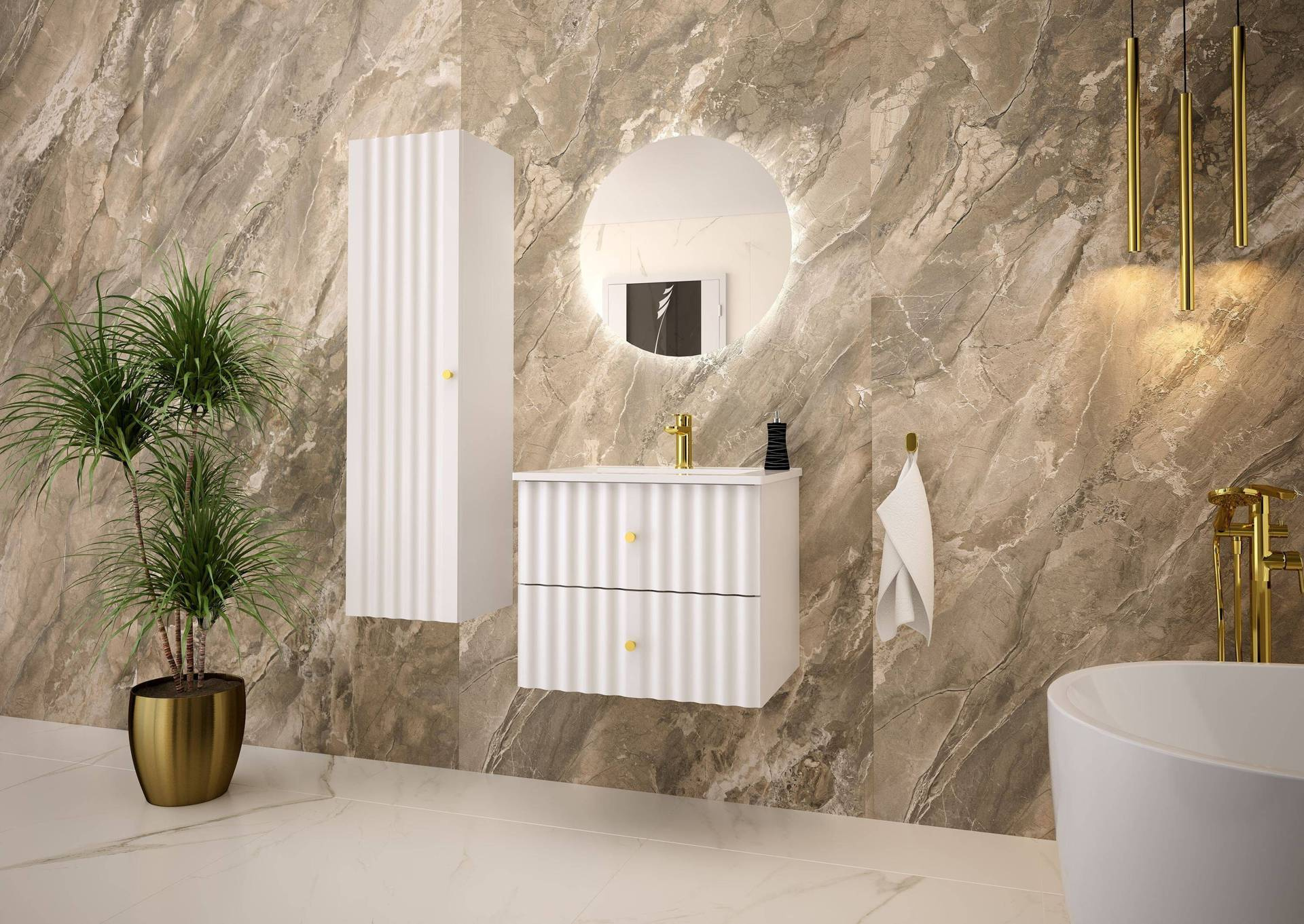 W świecie nowoczesnego designu łazienki, zestaw AQUA-02 marki Megstyl to prawdziwy klejnot, który przekształca codzienne doświadczenie w coś wyjątkowego. Zestaw ten składa się z eleganckiej szafki z umywalką o szerokości 60 cm. Dzięki swojemu nieskazitelnemu białemu matowemu wykończeniu, wpisuje się perfekcyjnie w estetykę każdej łazienki, dodając jej wyrafinowanego charakteru.
