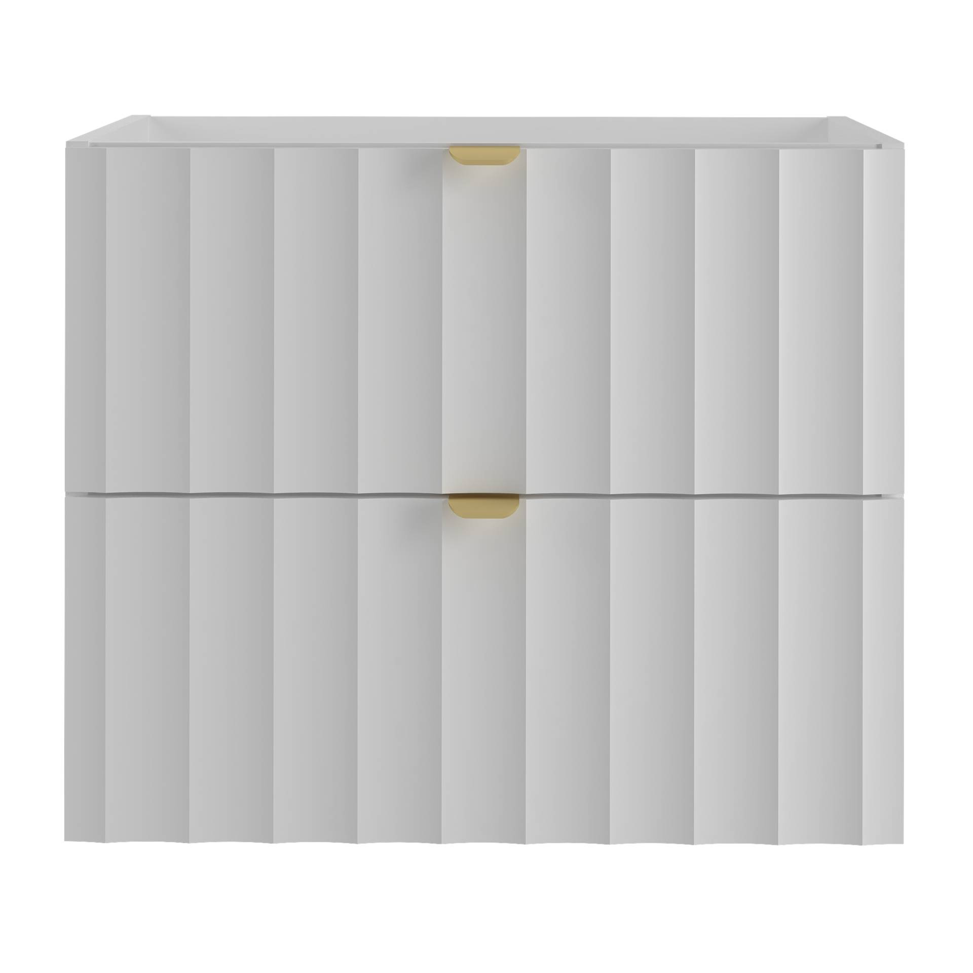 Szafka pod umywalkę ARCOS-06 marki Megstyl w białym macie, wykonana z MDF i płyty laminowanej. Eleganckie uchwyty w kolorze szczotkowanego złota oraz system cichego domyku zapewniają komfort użytkowania. Idealna do nowoczesnej łazienki.