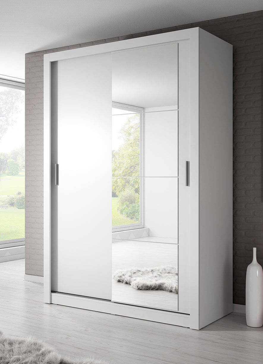 - Szafa ARTI AR-04 z lustrem i drzwiami przesuwnymi to idealne rozwiązanie do małych przestrzeni, zapewniając funkcjonalność i optyczne powiększenie wnętrza. Nowoczesny design w białym kolorze łatwo dopasuje się do każdej aranżacji.