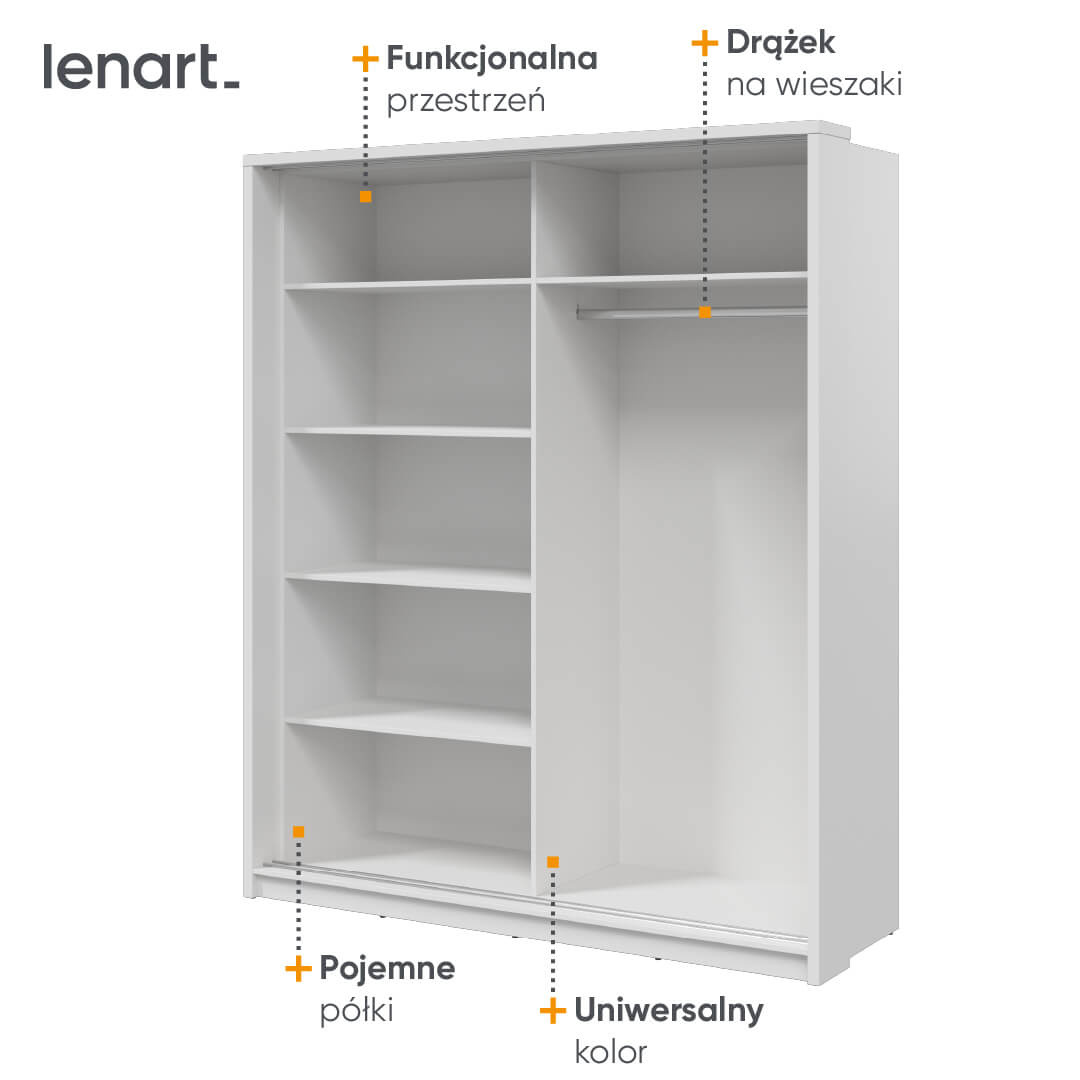 Szafa przesuwna ARTI AR-25 zapewnia wygodą i styl w jednym. Elegancka, biała z wbudowanym lustrem i praktycznym wnętrzem to idealny wybór dla nowoczesnej sypialni.