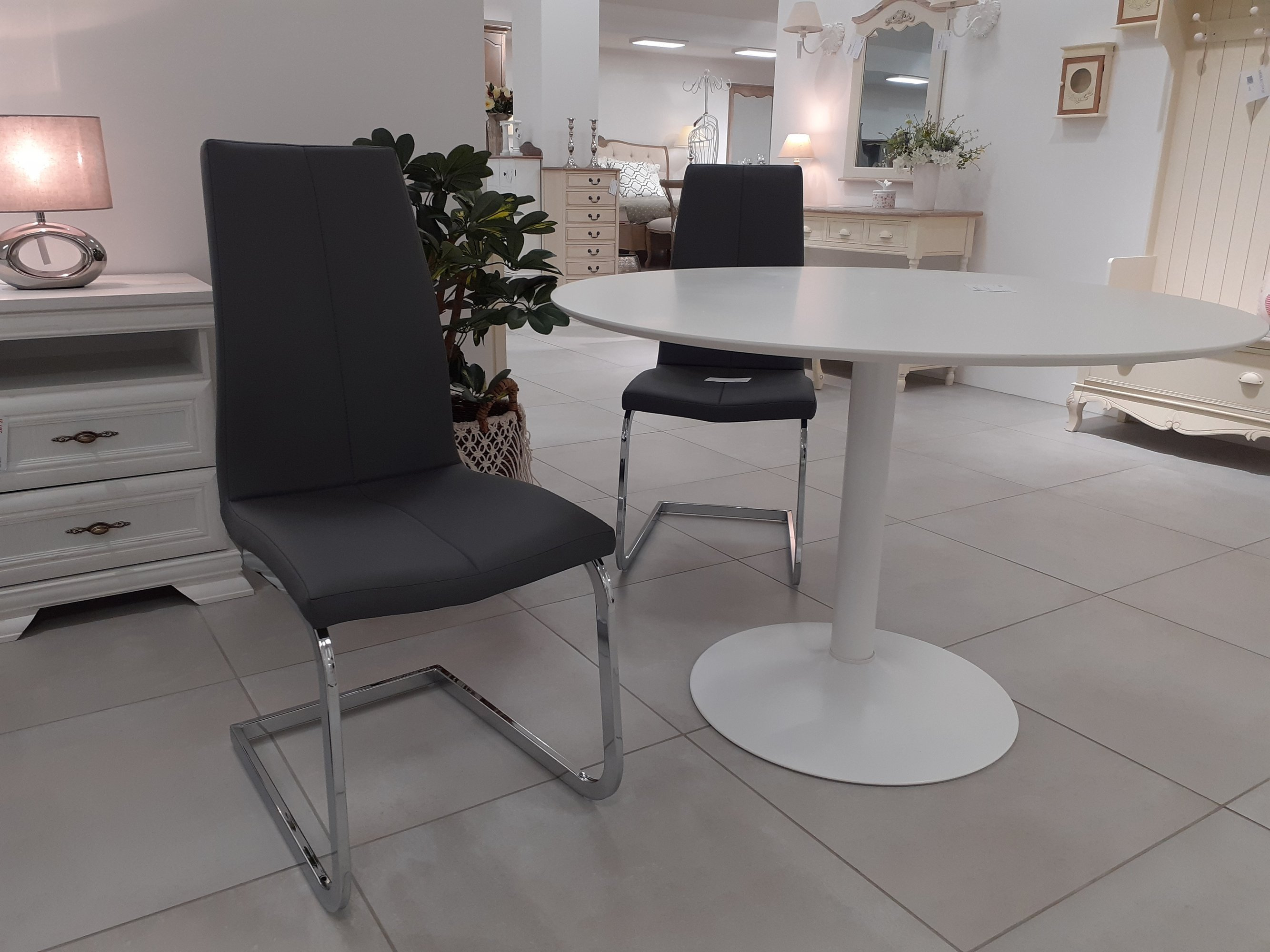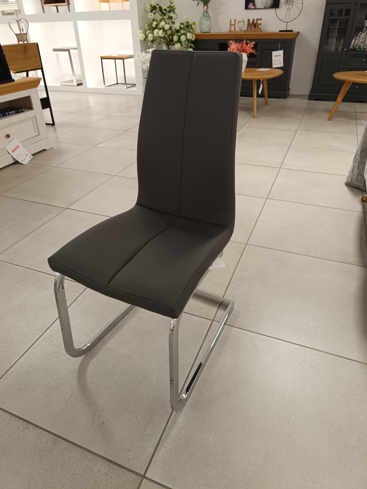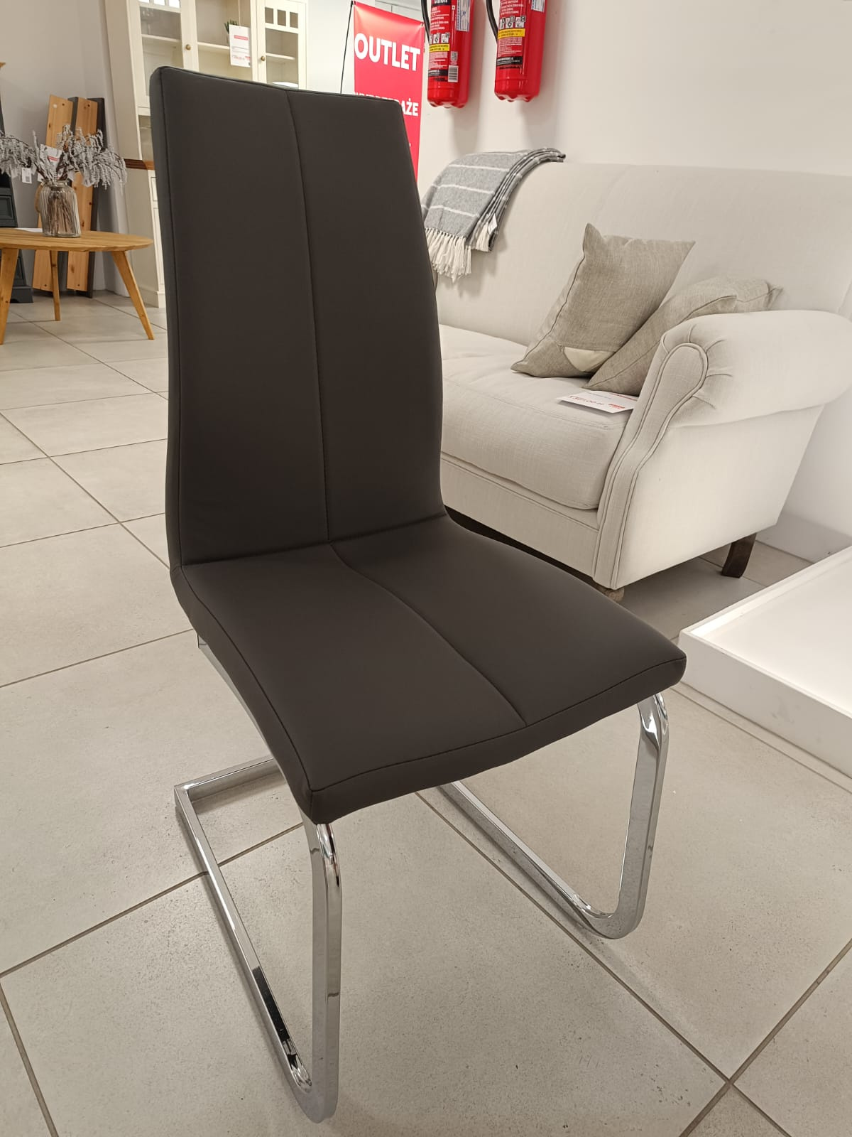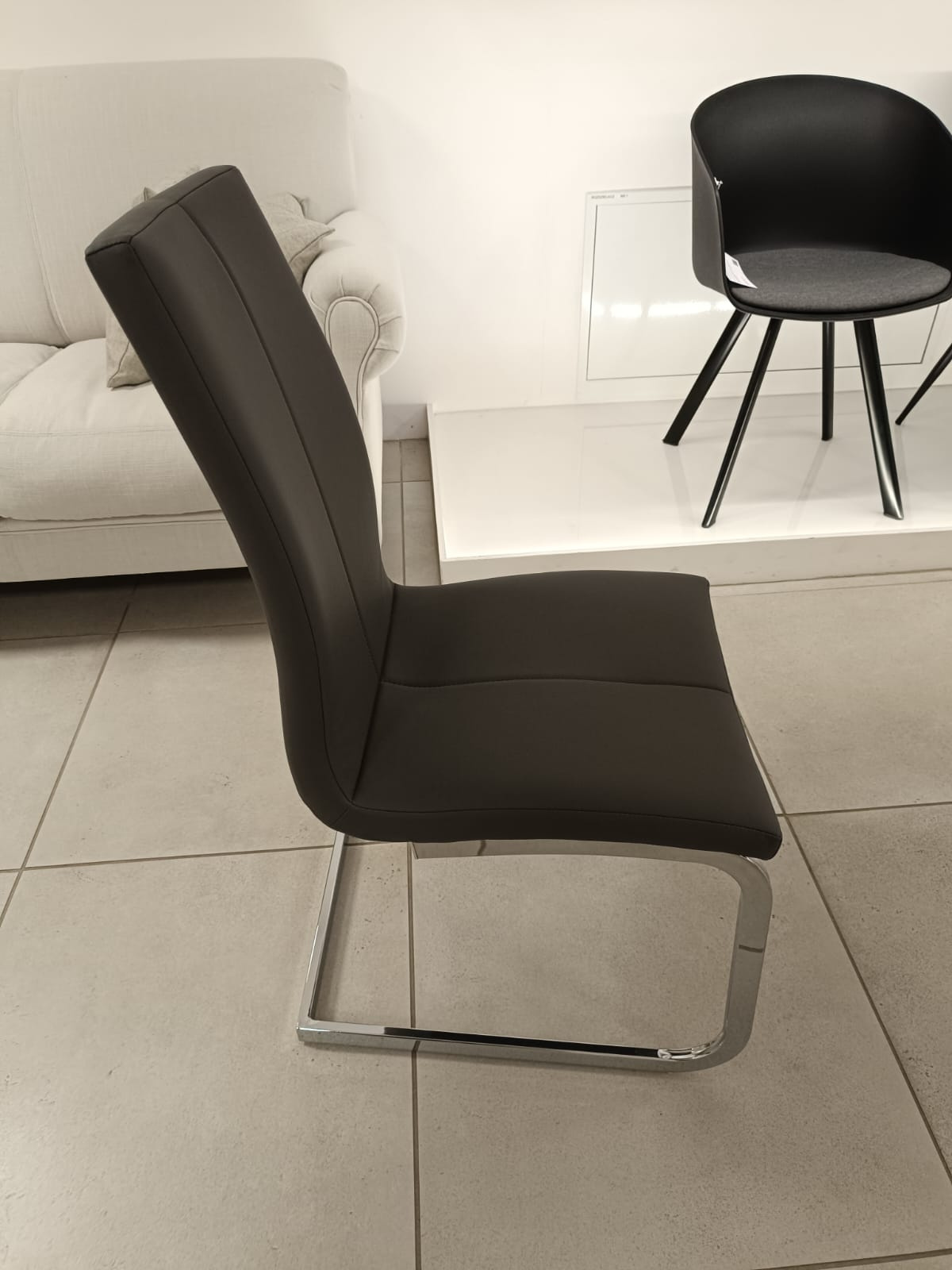 - Wygodne i eleganckie krzesło Asama, z obiciem z eko skóry, na metalowej podstawie.