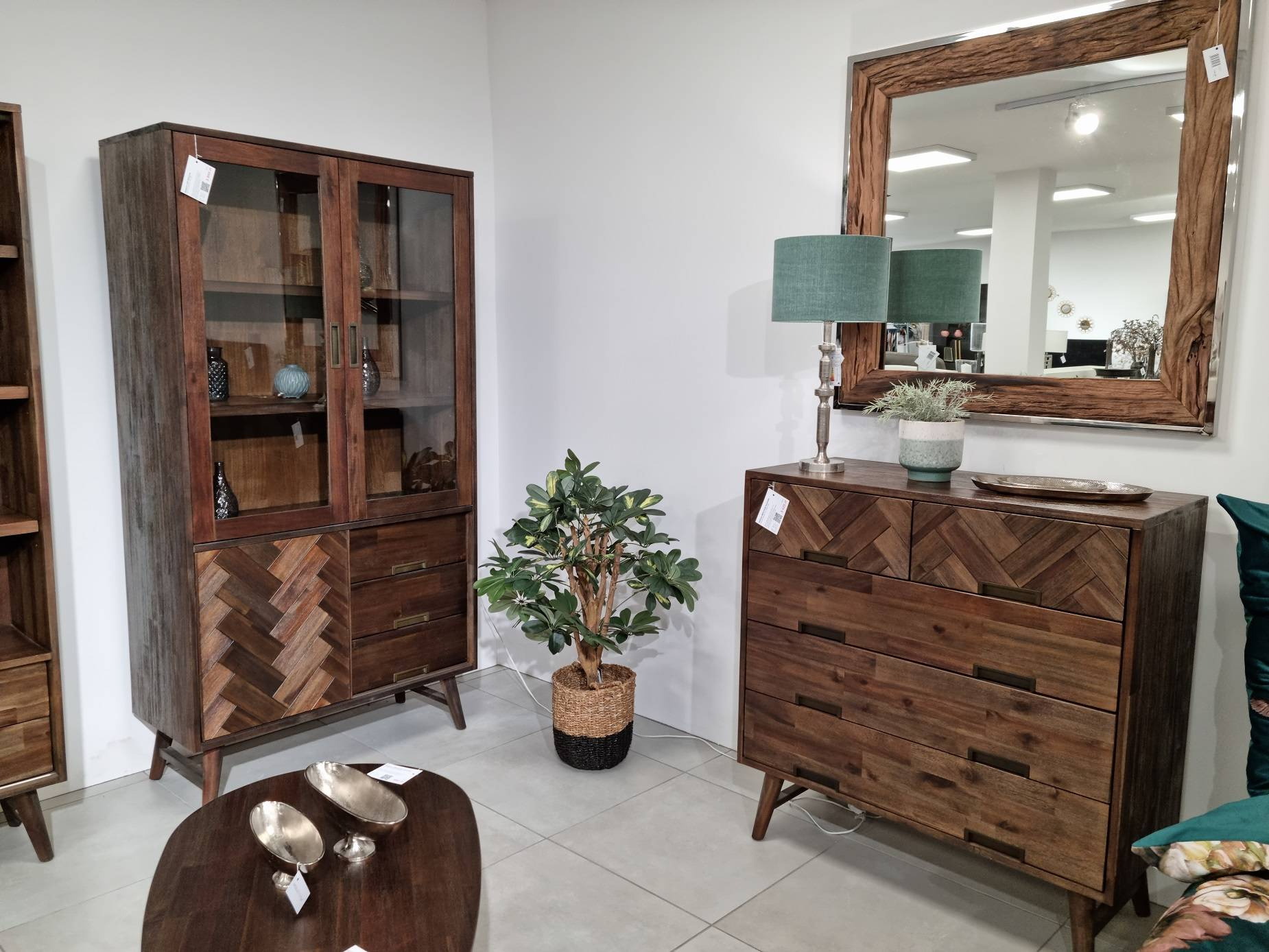 Jeżeli jesteś miłośnikiem łączenia form, nietuzinkowego designu i solidnych, drewnianych mebli - meble z kolekcji Ashton stworzone zostały dla Ciebie. Piękna i okazała komoda z sześcioma szufladami i ciekawie zaprojektowanymi frontami skutecznie wypełni Twoje wnętrze stylem i elegancją. Fronty dwóch górnych szuflad ozdobione są modną dla stylu retro oraz vintage intarsją. Geometryczne metalowe okucia nie odwracają uwagi od całości bryły, ale dodają ciekawy akcent całej konstrukcji. Tak samo, jak charakterystyczne dla tej kolekcji drewniane, proste, smukłe nóżki łączone dodatkową poziomą belką, podkreślające oldschoolowy design i solidność formy. Komoda dzięki barwie głębokiego brązu doskonale prezentuje się w jasnych lub surowych wnętrzach. Fantazyjnie łączy się ze wzorzystymi tapetami i naturalną zielenią kwiatów doniczkowych. Wzbogać swoje wnętrza meblami świadczącymi o Twoim wyrafinowanym guście i twórz piękne, przytulne przestrzenie.