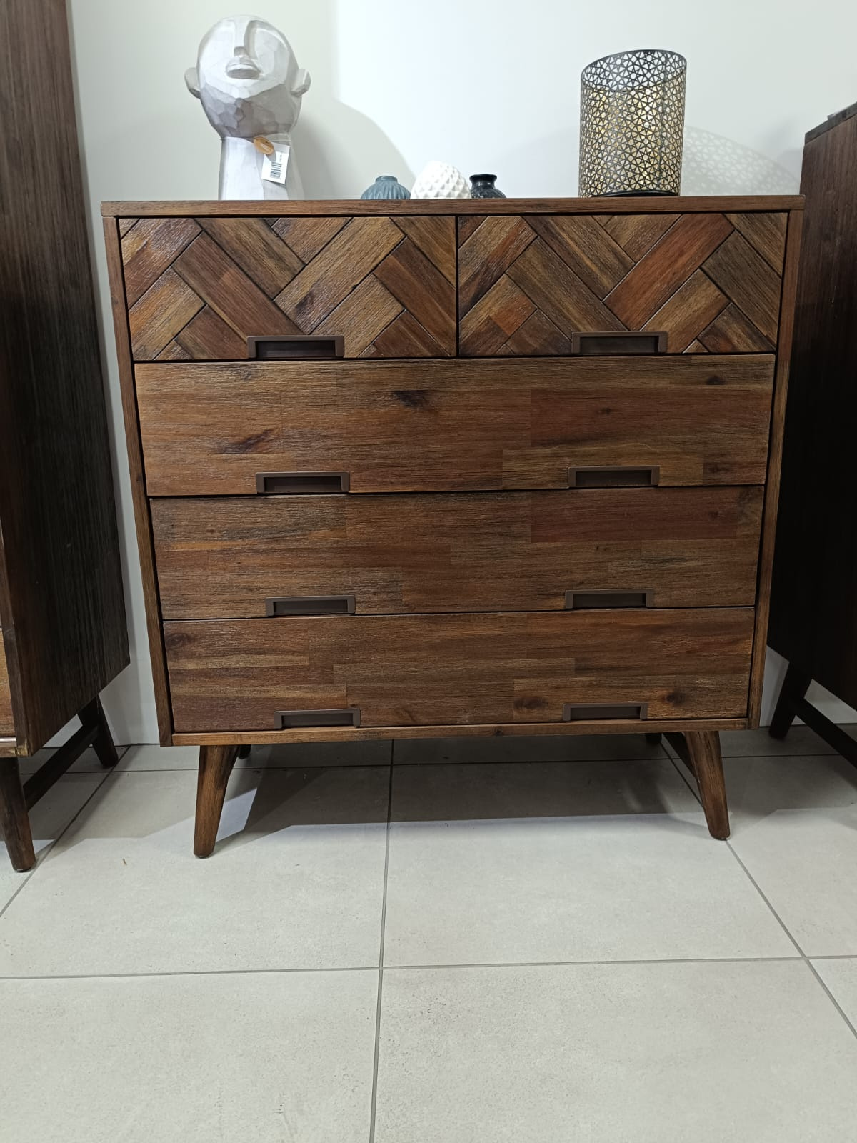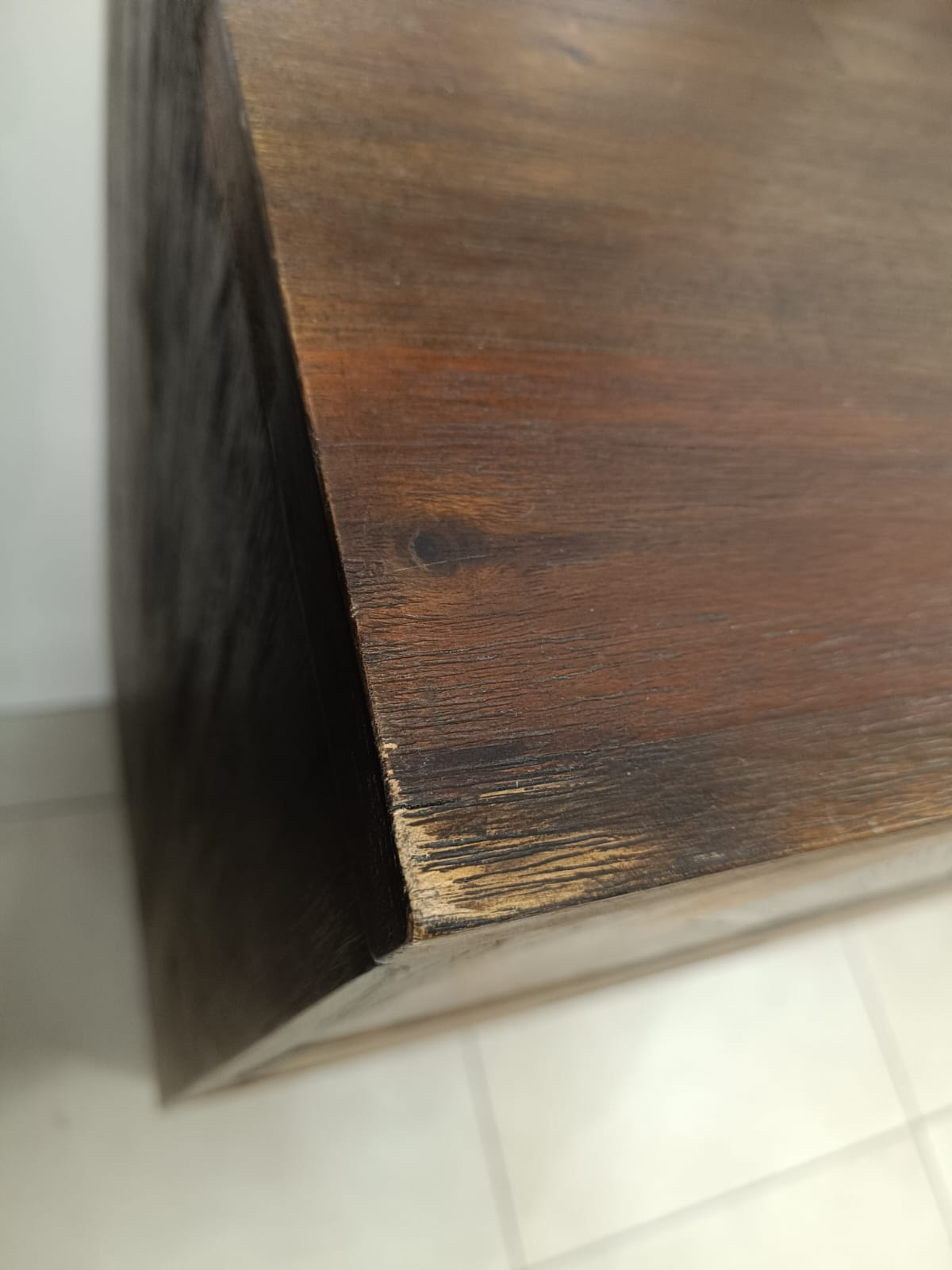 • Towar poekspozycyjny, posiada lekko uszkodzony róg komody i rysę na blacie.